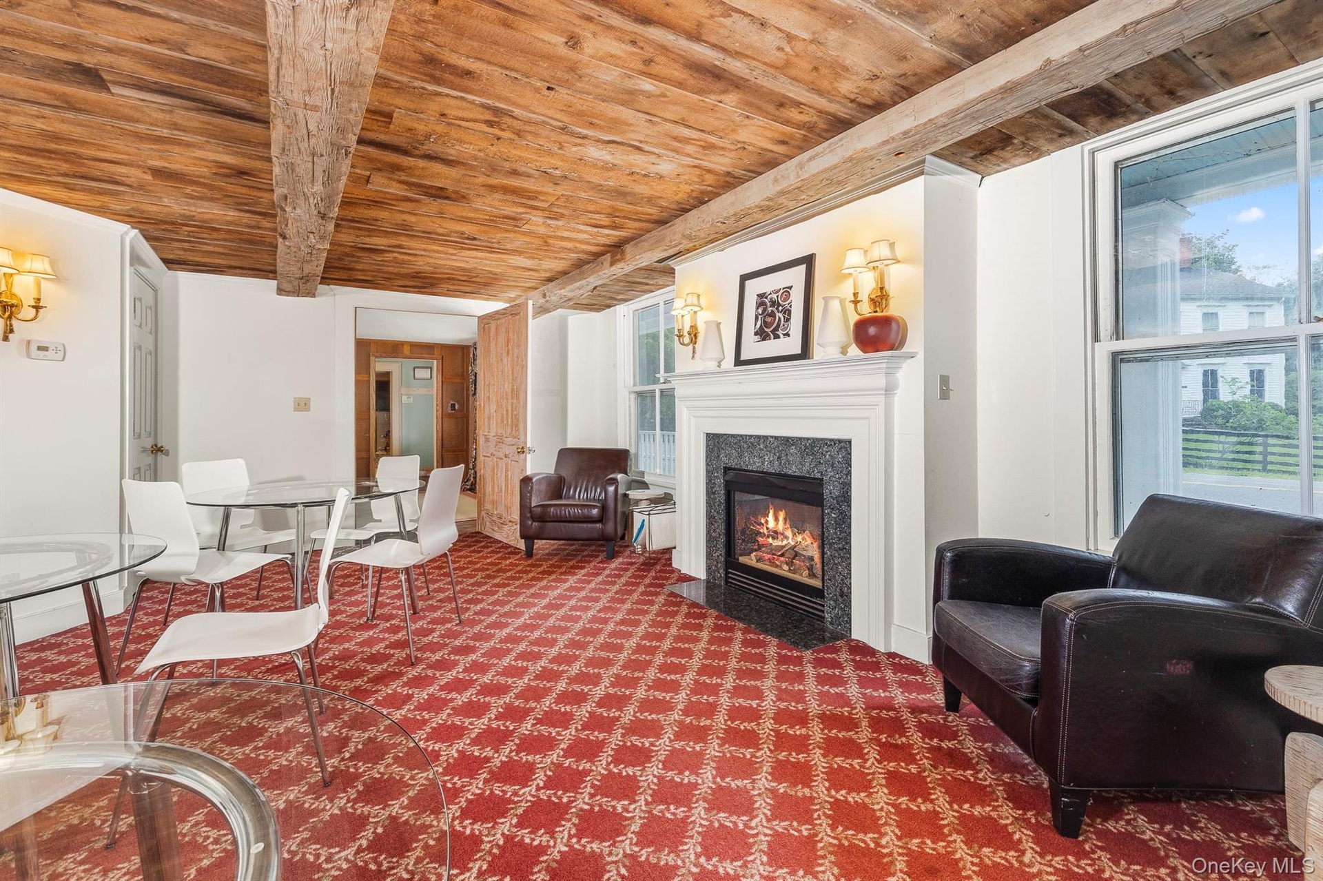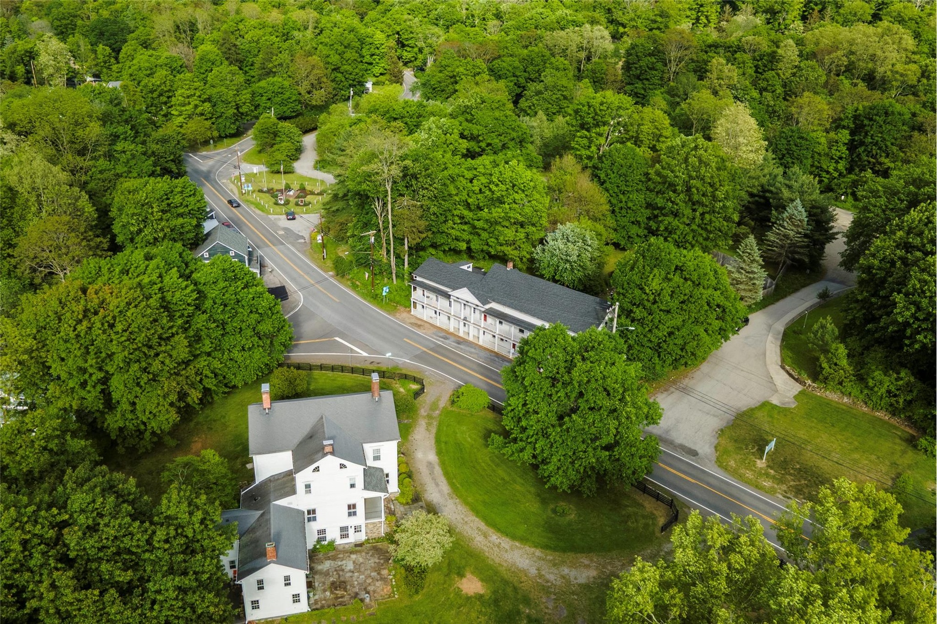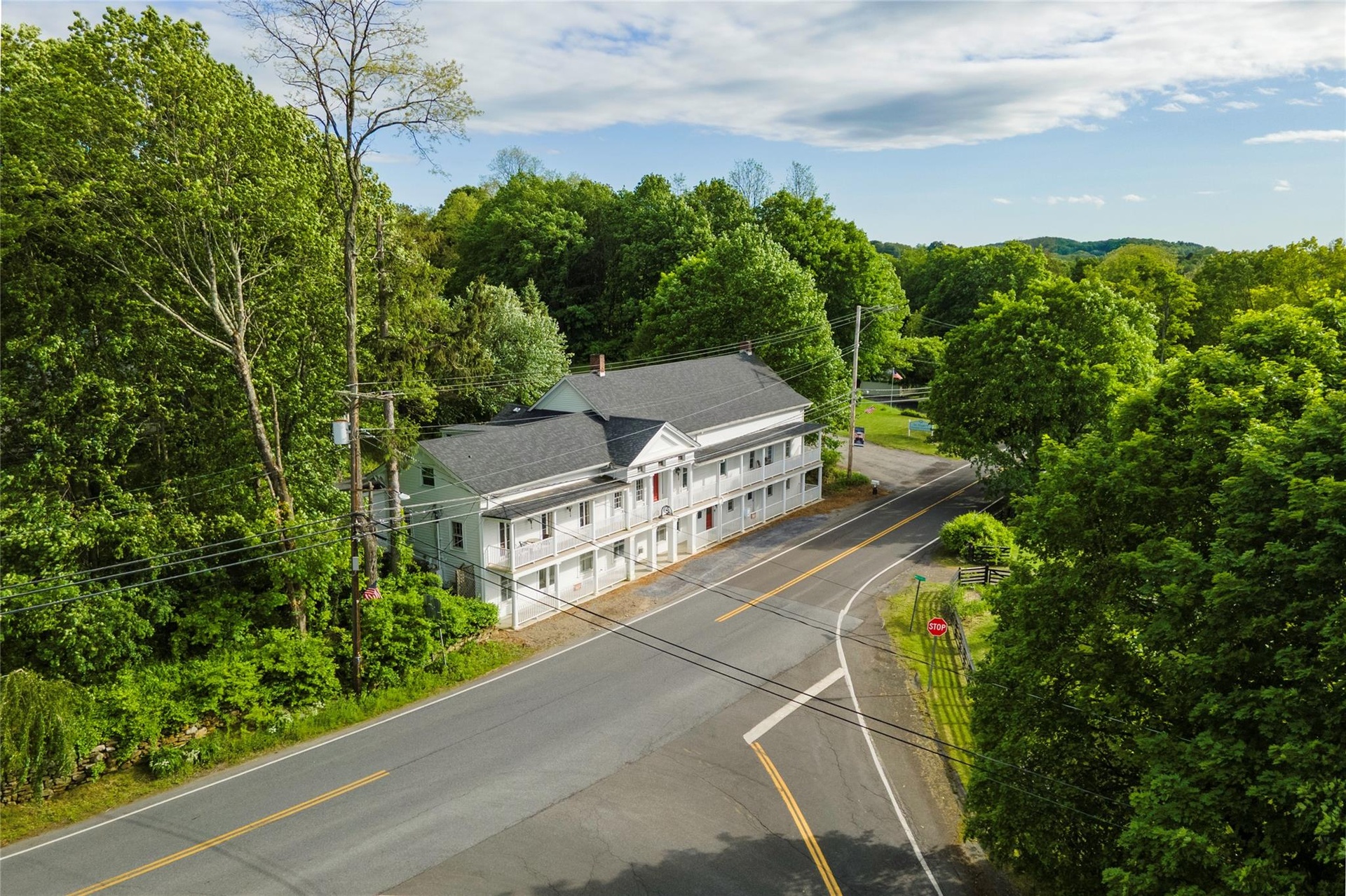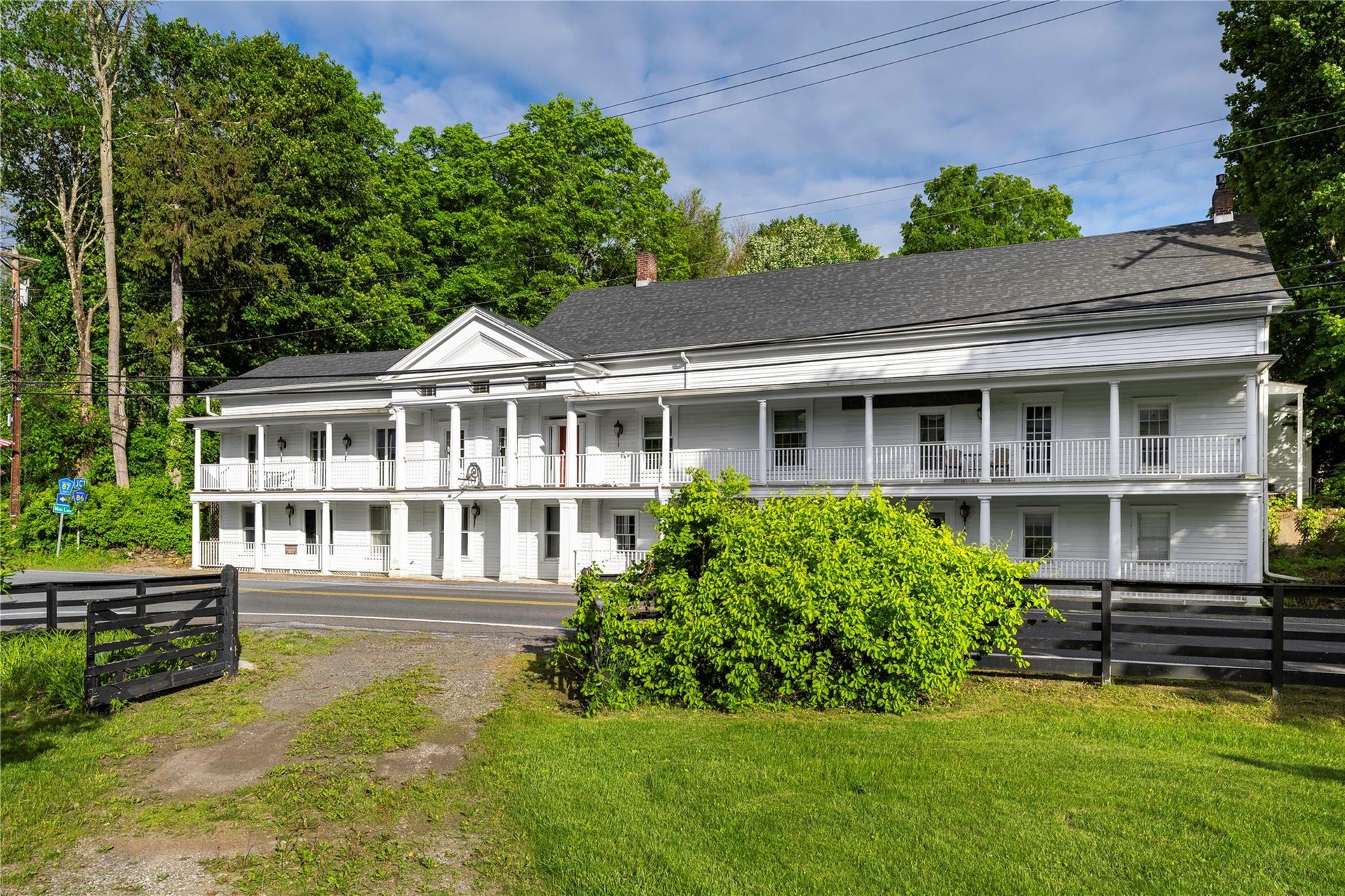 ZONED MIXED USE. This is Bullis Hall, the circa 1800’s Greek Revival landmark in the picturesque and historic hamlet of Bangall in Stanford, NY. The Hudson Valley, Dutchess County property is situated with excellent street frontage on Hunns Lake Road just off Route 82. With over 6,000 square feet, the building is ready for its next steward; a blank canvas for future use. Bangall is one of many hamlets in the town of Stanford, where the Dutchess and Columbia Railroads once rolled in from New York, servicing dairy farms and bringing summer vacationers to nearby Hunns Lake. J.H. and J.W. Bullis are the original names behind the building, who resided in the large colonial home across the street. The earliest documents of the building record a series of stores, including a tin shop, iron roofing fabrication, a post office and a modest hotel. The building evolved to become a gathering place for the community when a large elegant room was added circa 1900, that hosted musical performances, comedy shows, voting, and dinner meetings. Prominent town families such as John June and Thaddeus Knickerbocker were once tenants. Addison Berkey turned Bullis Hall into an opulent Bed and Breakfast years later, with an elegant smoking room, grand dining and credentialed chefs. Relais & Chateaux featured Bullis Hall in their well-known boutique hotel catalogue. You may enter Bullis Hall from the lovely stone walled, slate paved private terraced garden courtyard. On this main level is a large foyer with a fireplace which opens to the great room, also with a fireplace. Oversized windows, high ceilings are throughout, as well as detailed crown moldings. There are presently five “suites” with baths; three suites are comprised of two generous rooms. Two suites have direct outdoor access. Another large room is used as a conference room. There is a beautiful long outdoor balcony overlooking the hamlet. The cozy, wood beamed lower level includes another wood paneled foyer. The street facing entrance is here with a newly poured cement walkway running the entire length outside. Back inside, another room with a fireplace leads to more space and then into the modern, custom-built gym, with new lighting and separate heat and A/C. Additionally, a half bath and more office/space is on this level. At the very top, third floor level, there is more living space with a kitchen and bath. New roof and gutters were installed in 2019, new well water pump 2023, exterior painting and new exterior decking were completed in 2020. Currently being used as office space. This is just two hours from New York and nearby Metro North and Amtrak. Nearby to shopping and dining towns of Millbrook, Sharon CT, Millerton, Rhinebeck and more. Welcome to the Hudson Valley!