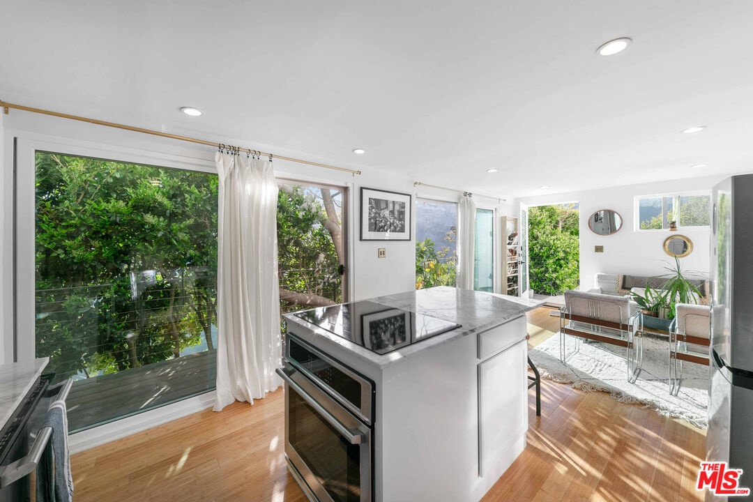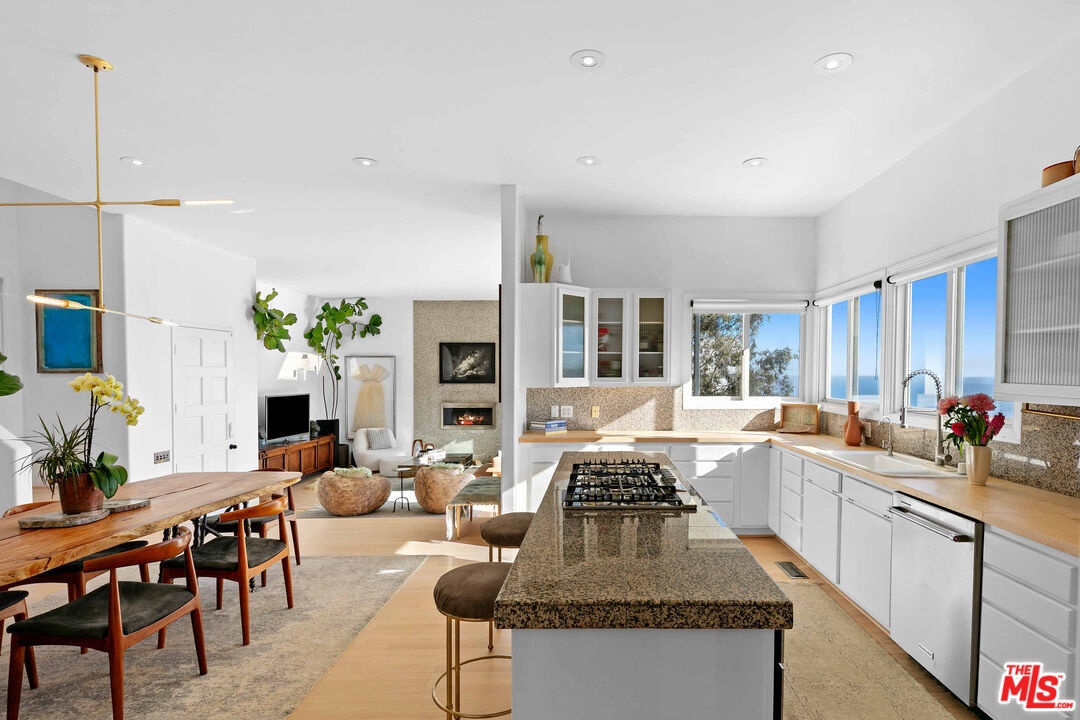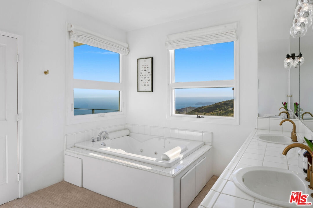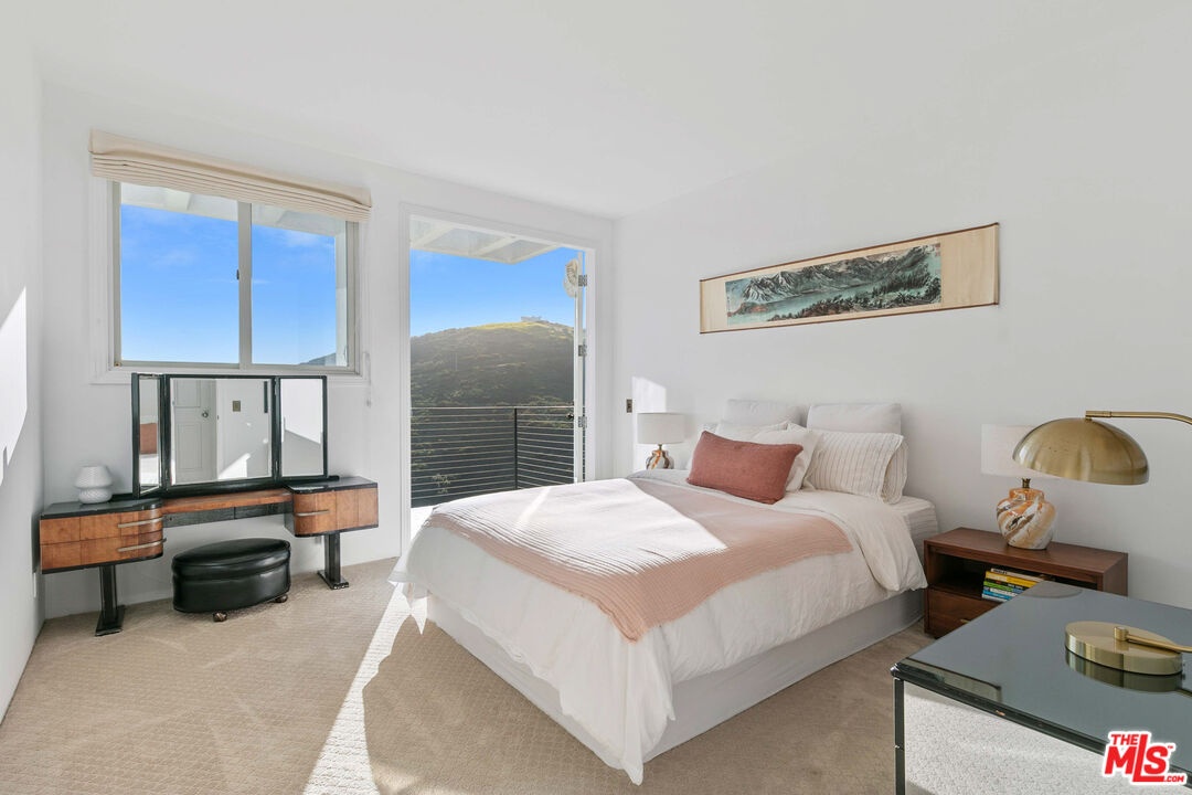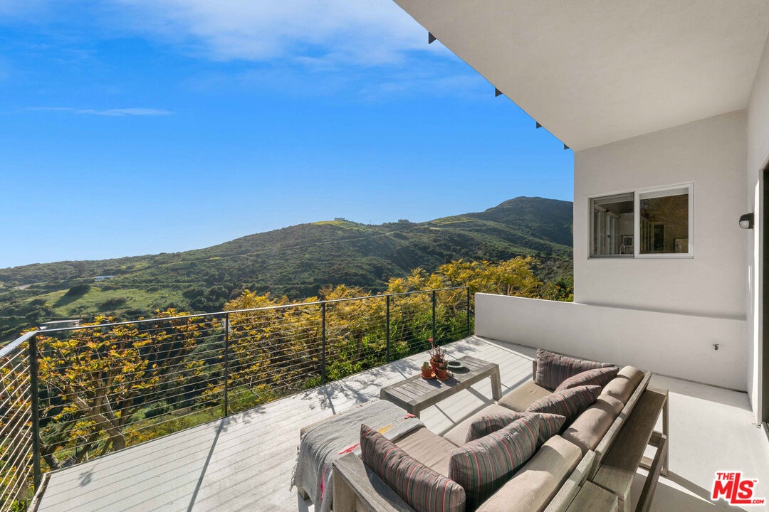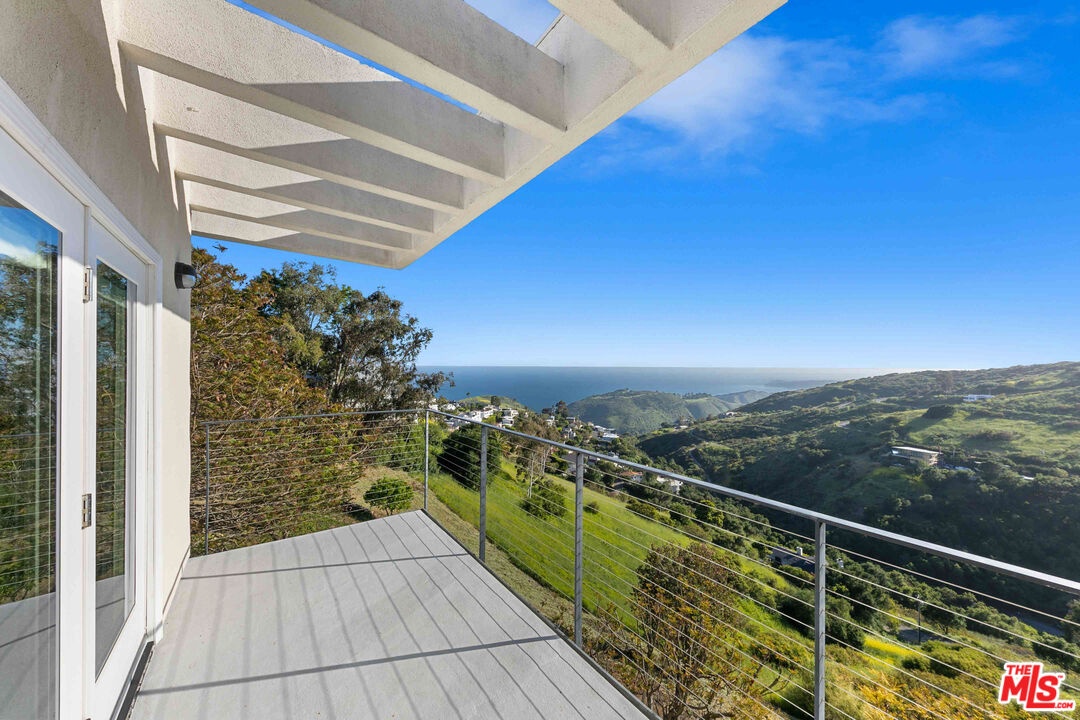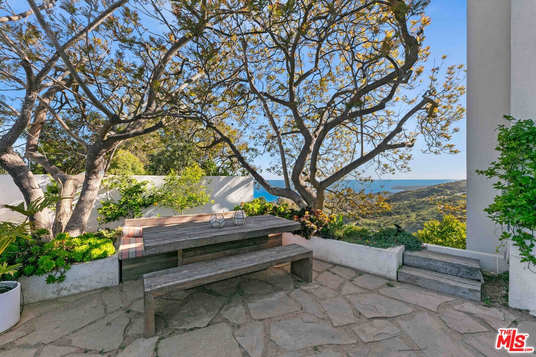A Private Malibu Sanctuary with Breathtaking Views. Perched atop a secluded hill on over 5 acres in enchanting Corral Canyon, this stunning Malibu retreat offers the rare combination of absolute tranquility and effortless access to town. Surrounded by untouched natural beauty, with panoramic, ever-changing views from every room, this home is a true sanctuary, perfect for those seeking peace, privacy, and a deep connection to nature without sacrificing convenience. From sunrise over the Queen's Necklace to golden sunsets behind Point Dume, the unobstructed ocean and canyon vistas stretch endlessly, creating a daily experience of awe and inspiration. Inside, the thoughtfully designed residence welcomes you with soaring ceilings, expansive walls of glass, and an open, flowing floor plan that seamlessly blends indoor and outdoor living.The heart of the home features a bright living room with a wood-burning fireplace and Fleetwood pocket doors that open to a lush garden setting, ideal for quiet reflection or lively gatherings. A gourmet kitchen with a central island connects to the spacious dining area and nearby powder room. Upstairs, the primary suite offers a private balcony, fireplace, walk-in closet, and spa-like bath, while two additional bedrooms share a view-filled terrace.Downstairs, a separate-entry guest unit offers a one-bedroom suite with its own kitchen, living room, laundry, and full privacy-perfect for visitors, a home office, or creative studio. Outside, enjoy mature citrus and fruit trees, a lemon grove, and direct access to miles of nearby hiking and biking trails.Just minutes from Malibu's best beaches, First Point surf, Malibu Country Mart, and with quick access to Santa Monica and the Valley, this property is a rare offering an inspiring and restorative retreat where nature, solitude, and convenience meet.