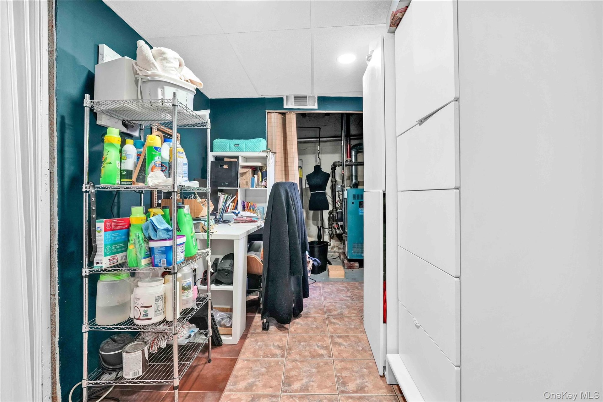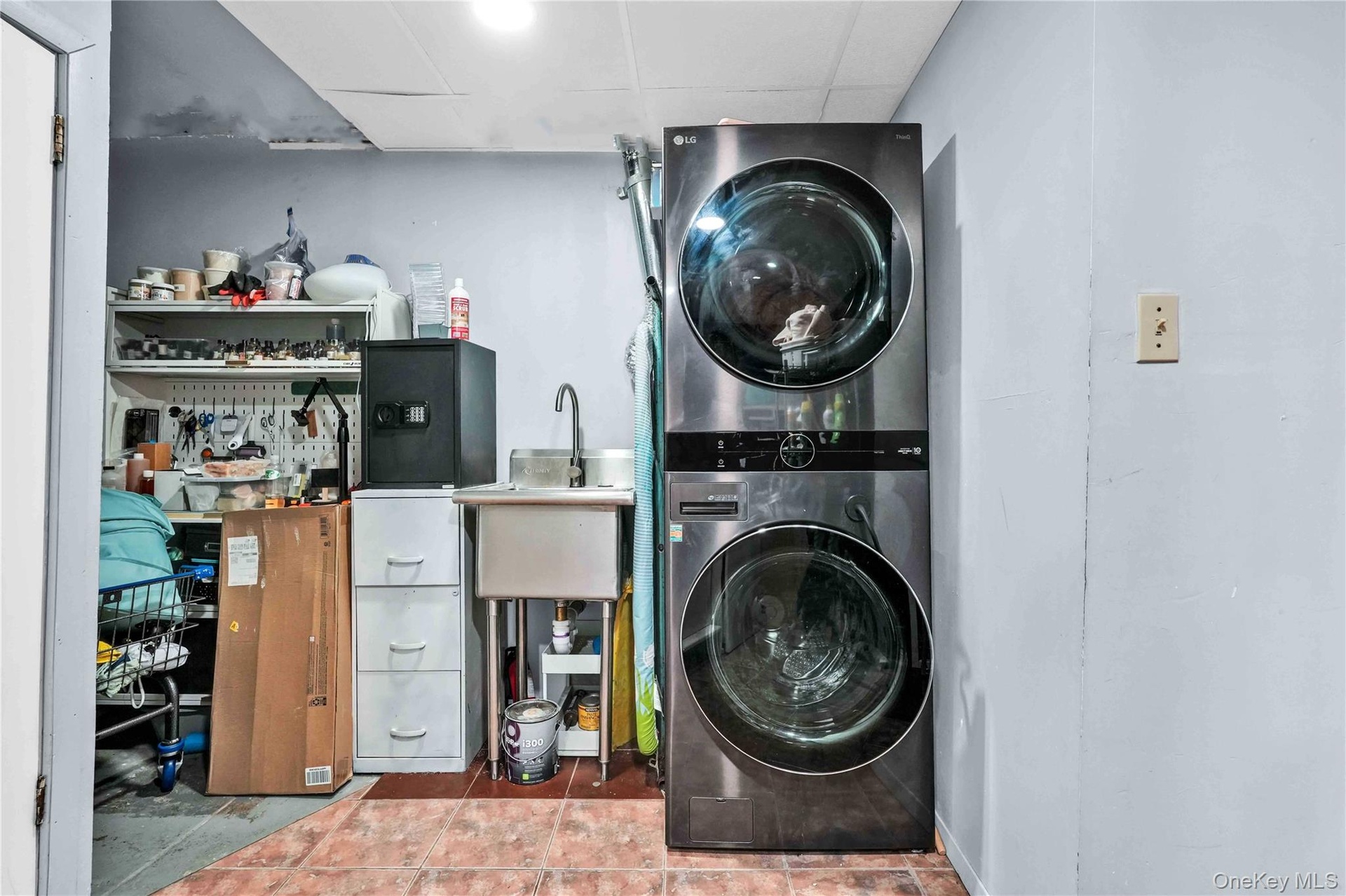 - Laundry area with stacked washing machine and dryer