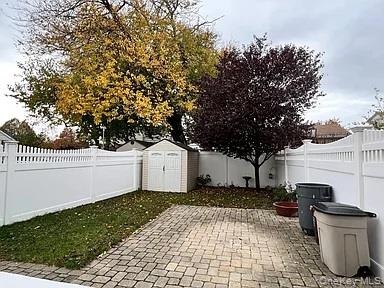 - Fenced backyard featuring a patio area