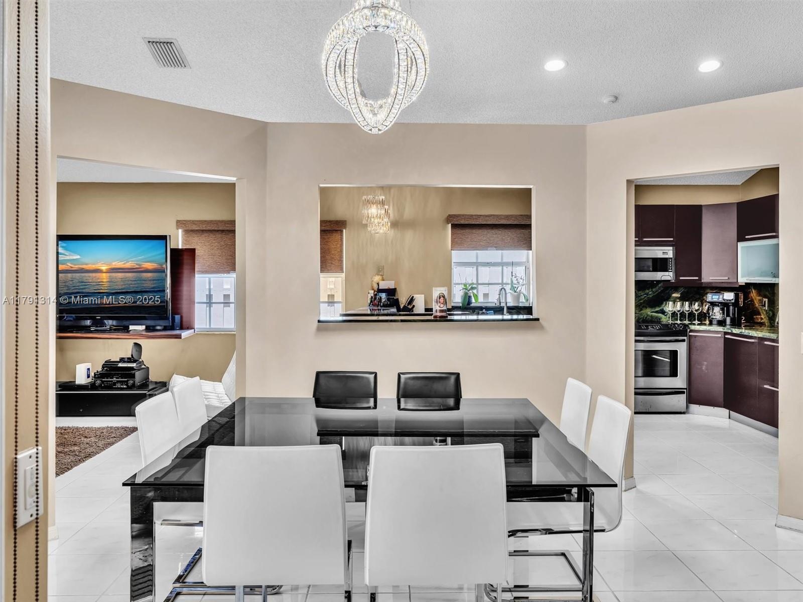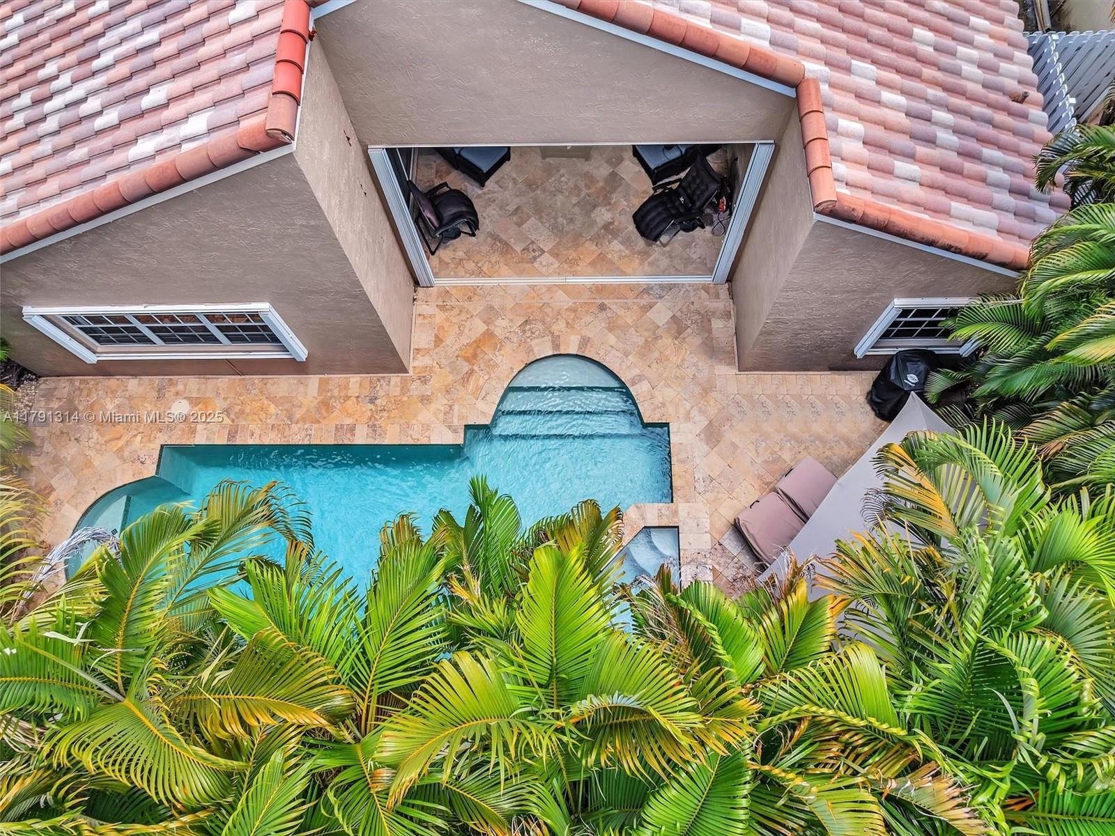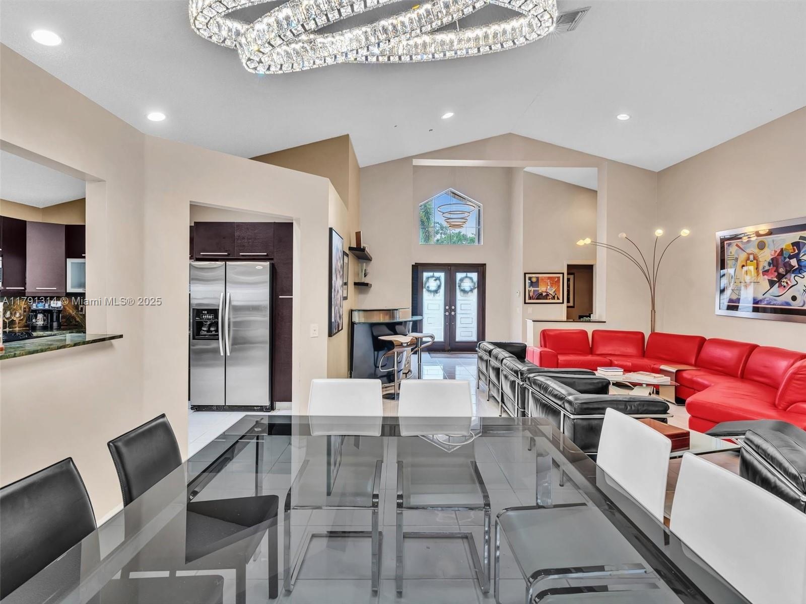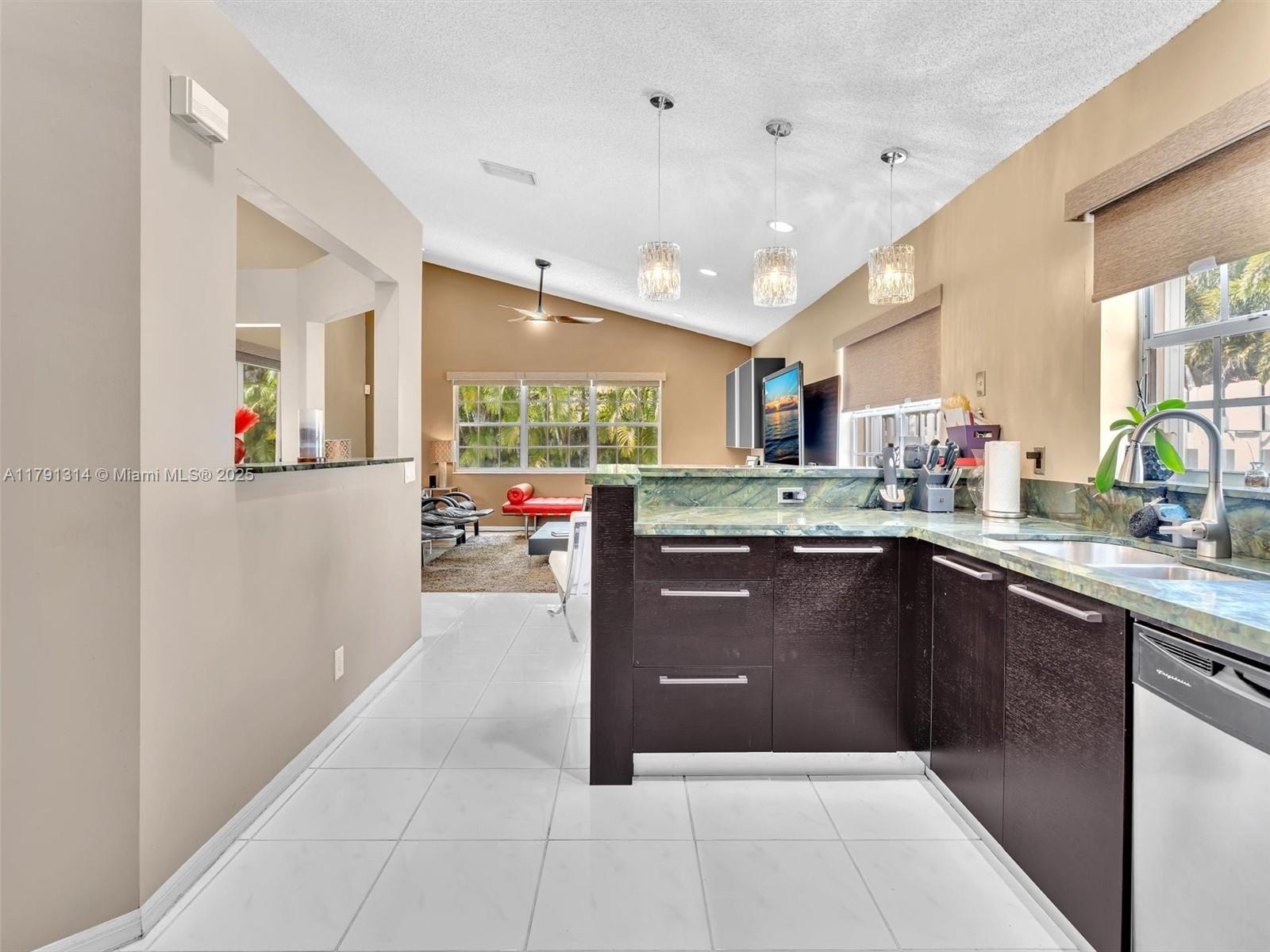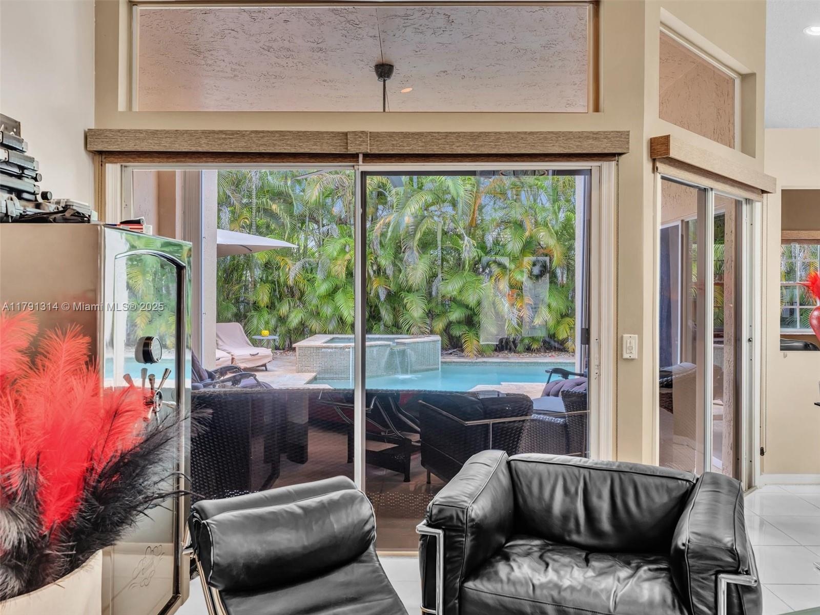 Spacious open plan filled with natural light. The kitchen, which overlooks the pool, features granite countertops and stainless steel appliances.