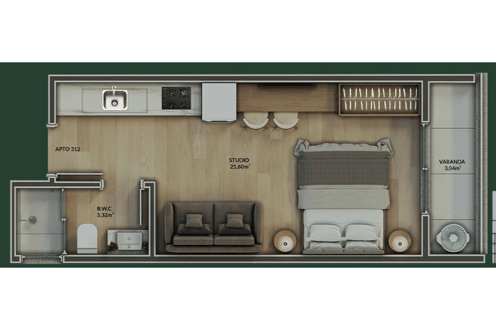| Studio Apartments | 28.87 - 68.12 | Studio with integrated bedroom, living/kitchen, social bathroom, hobby box | 481,000 to 837,020.80 |