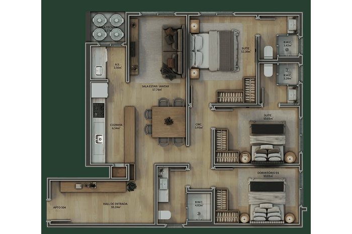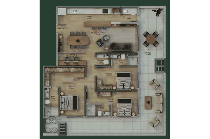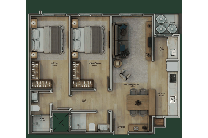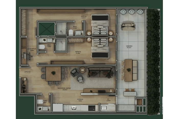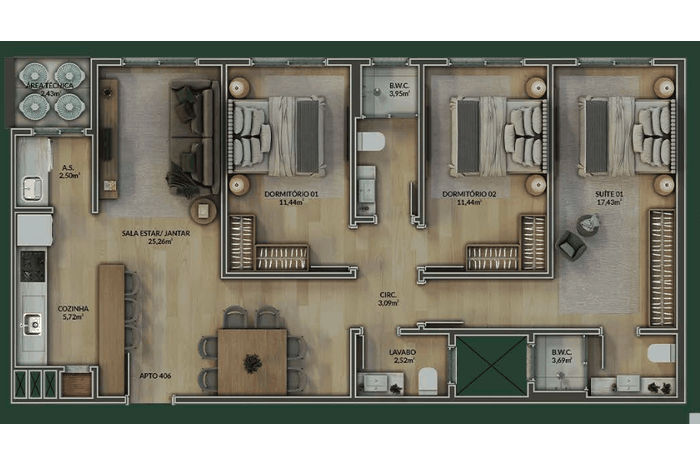 | 3 Bedrooms (2 suites) | 99.21 - 99.23 | 3 bedrooms (2 suites), social bathroom, hall, living/dining, kitchen, service area, BBQ, hobby box | 1,070,481.50 to 1,203,042.50 |