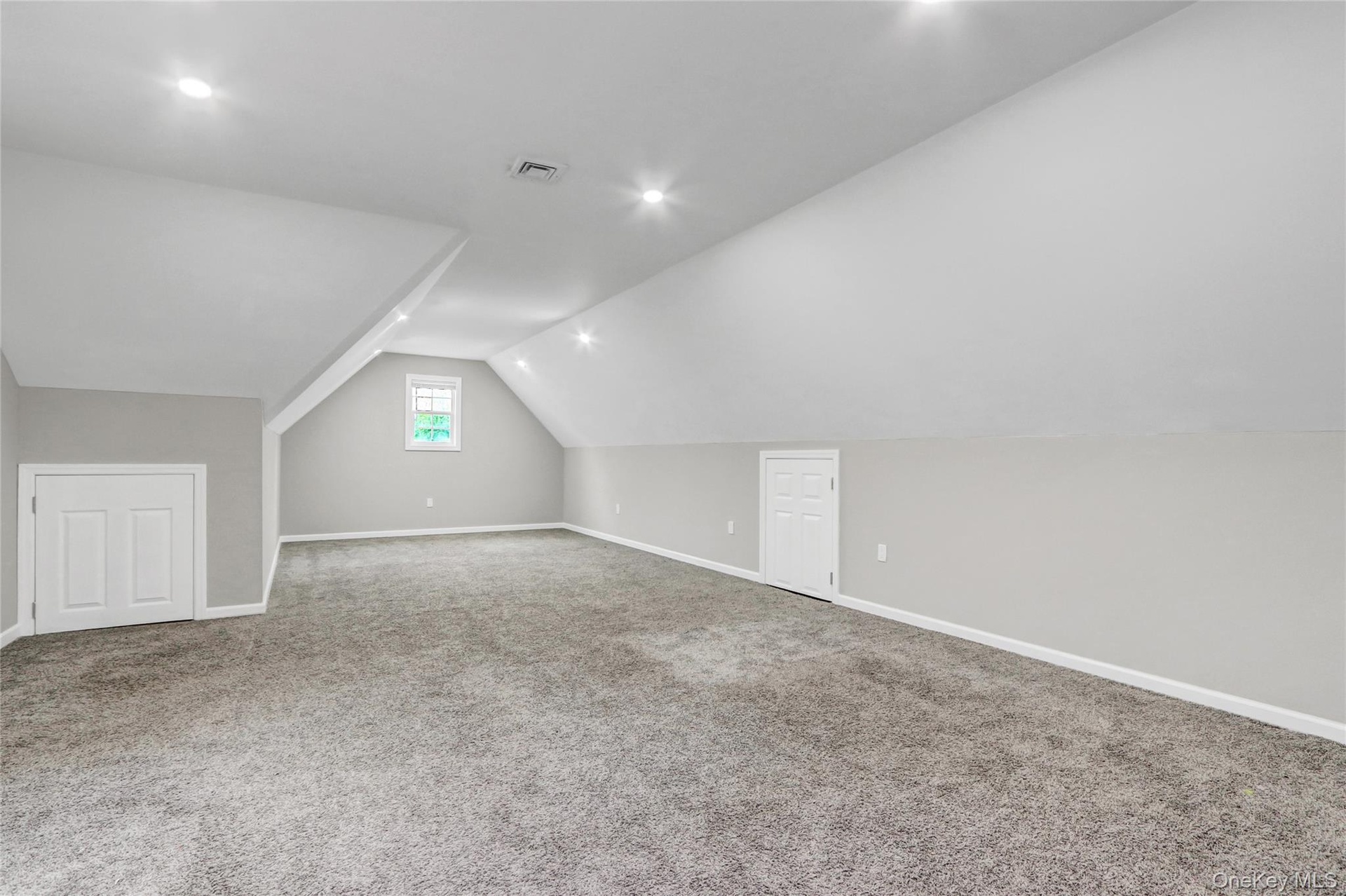 - Additional living space featuring carpet floors, vaulted ceiling, baseboards, and recessed lighting
