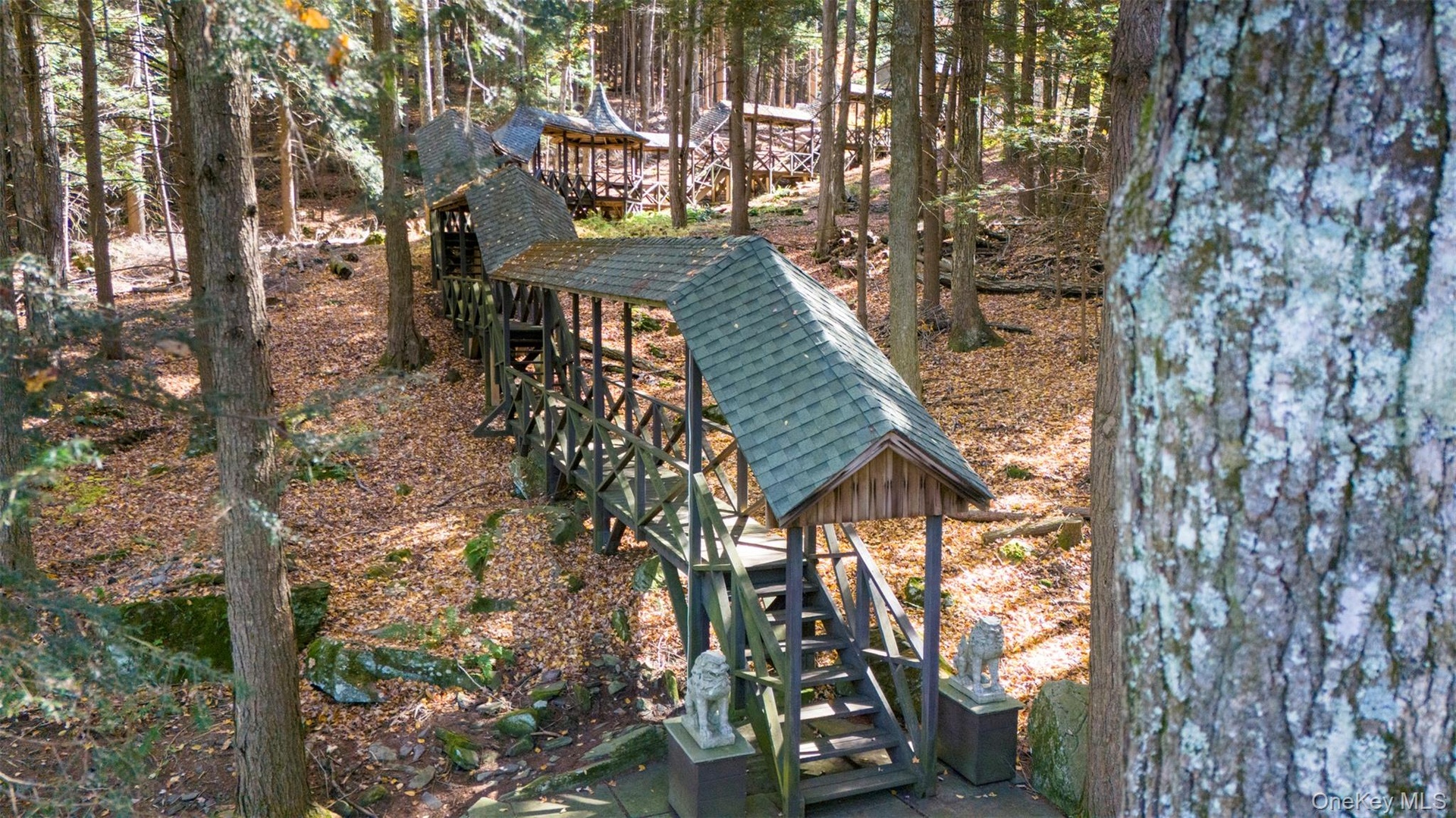 - Wooded pathway, With giant urns, leading to a second Pagan Maze
