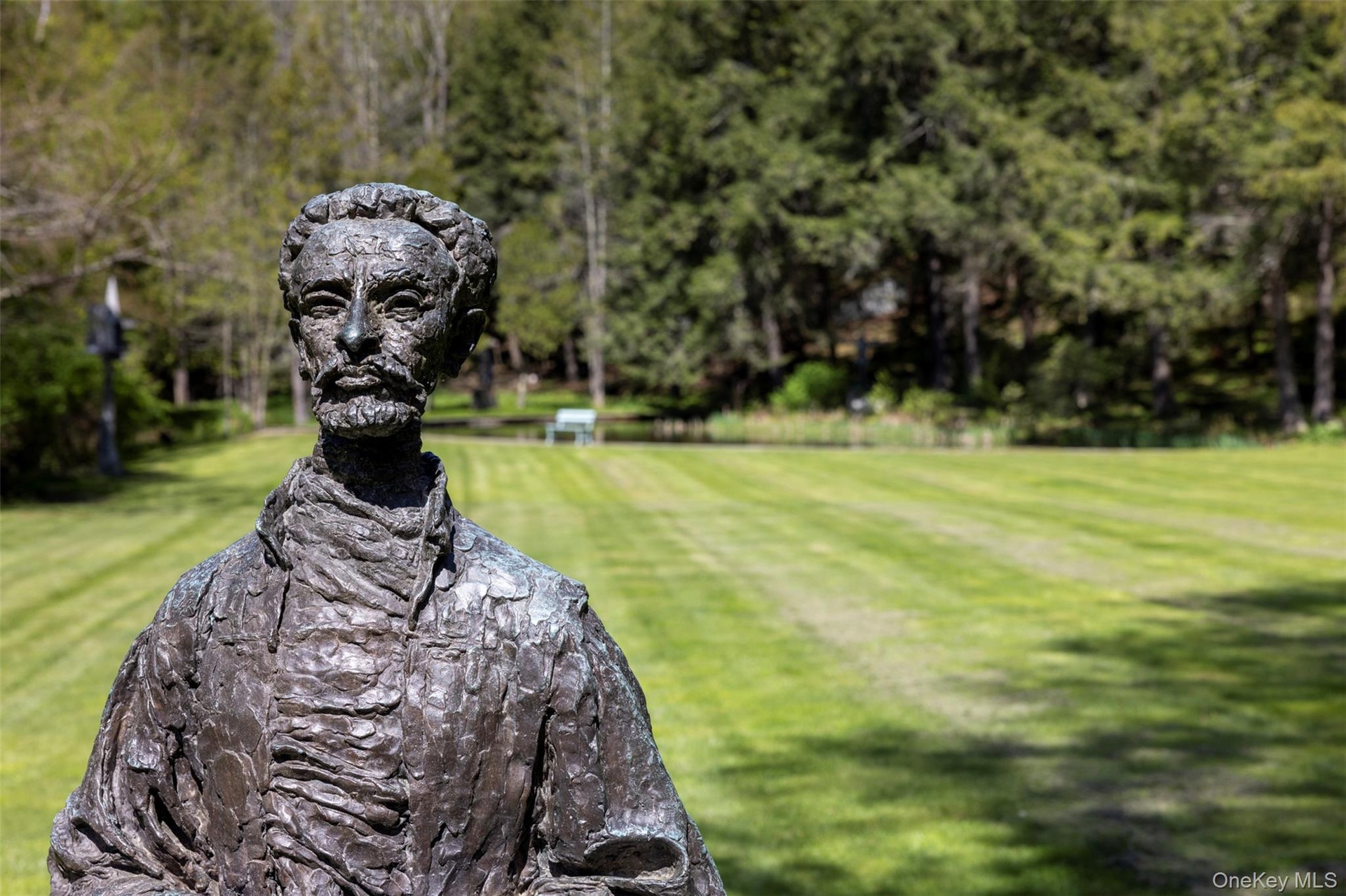 The property is offered with over a dozen outdoor sculptures. A comprehensive inventory is available upon request.