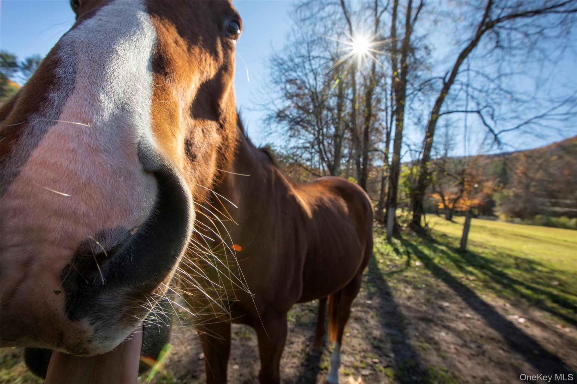 The land itself is a living canvas of potential: 40 acres of lawns, meadows and pasture, 240 acres of mixed forest, and two year-round streams—Bush Kill and Dry Brook—that offer private swimming holes, trout fishing, and serve as vital wildlife corridors. Bald eagles, deer, black bear, wild turkey, and trout are just a few of the species that thrive here.
