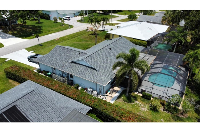 The seller is OFFERING $10,000 to the buyer towards their closing costs / rate buy down with an accepted offer till November 15. Welcome to your relaxing pool home at the heart of Sandpiper Bay area. With soaring ceilings, a split floor plan, beautiful wood floors in the living and master bedroom areas, impact grade windows + accordion shutters, all house generator, instant propane gas water heater and pool heater, an automated 7 zone sprinkler system on well, and much more.. The newer 2021 roof and a CBS building construction ensure your lower insurance bill. Fresh exterior paint (2024), New SS appliances (2025). Park your boat or RV: No HOA and not in a flood zone area. Minutes walk from the new PORT DISTRICT PROJECT with extended river board walks, parks, and more! ! Don't miss ou