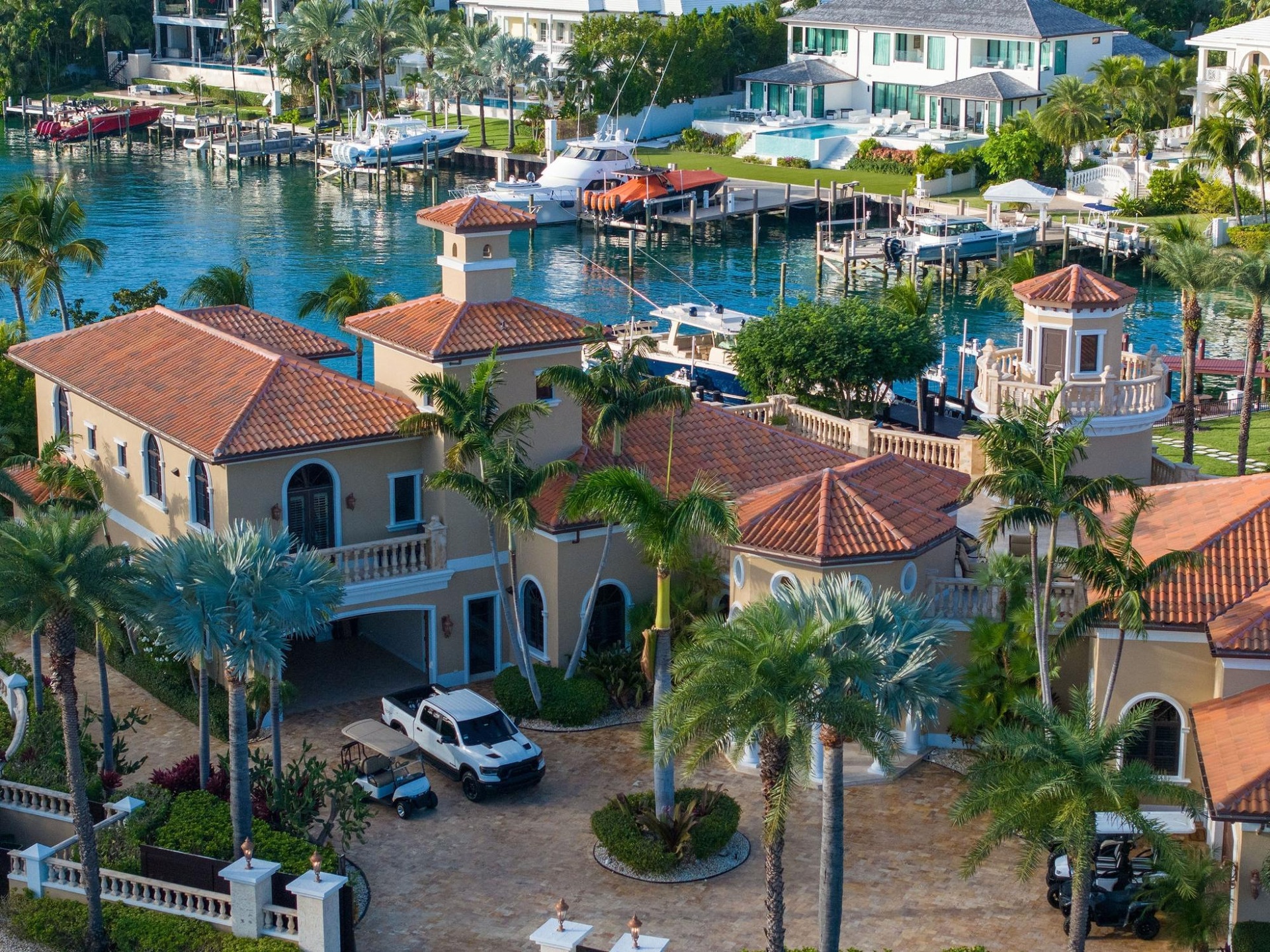 Among the rare jewels of Paradise Island, Villa Florentine shines with a distinctive elegance that captures the spirit of Bahamian luxury. Villa Florentine redefines opulence across its expansive 1.4-acre property. The estate features a 14,000 sq. ft. main residence and an additional 10,000 sq. ft. guest villa, combining for a total of 13 bedrooms and 13 bathrooms. The main house boasts 7 bedrooms with 7 ensuite bathrooms and 3 powder rooms. To sweeten the offering, Villa Florentine is being sold with a remarkable collection of vehicles, ensuring the next owner enjoys an unparalleled level of convenience and luxury: •2021 Cadillac Escalade •2022 Cadillac Escalade •2024 Dodge Ram G/T 4x4 Truck •2 - 2024 Can-Am 500 Outlander 2-Seaters •2 - 2024 Can-Am 500 Outlanders (Single Riders) •2 - 2022 Bintelli 6-Seater Golf Carts •1 - 2023 Bintelli Golf Cart •1 - 2024 Yamaha EZGO Golf Cart