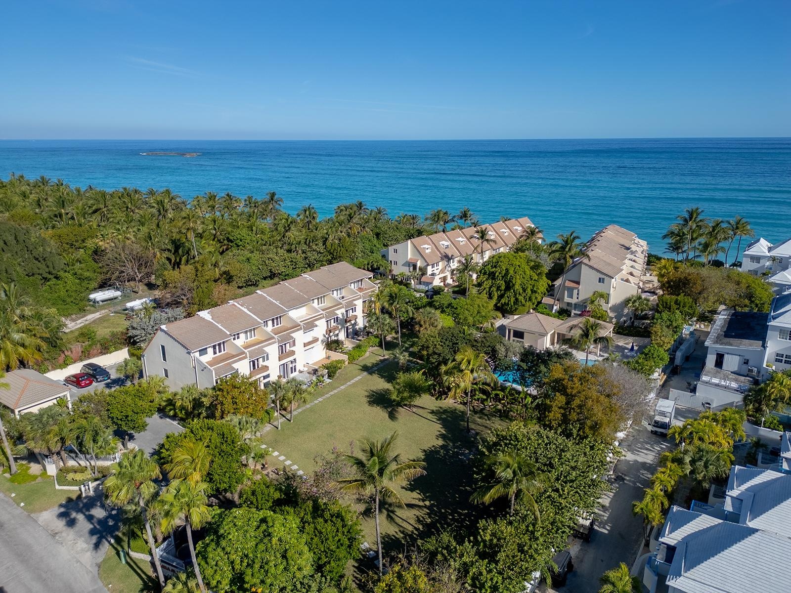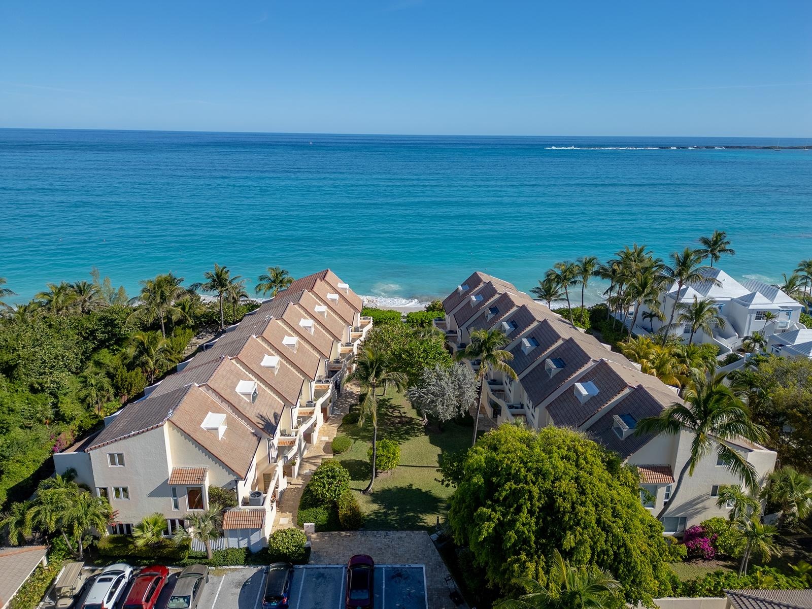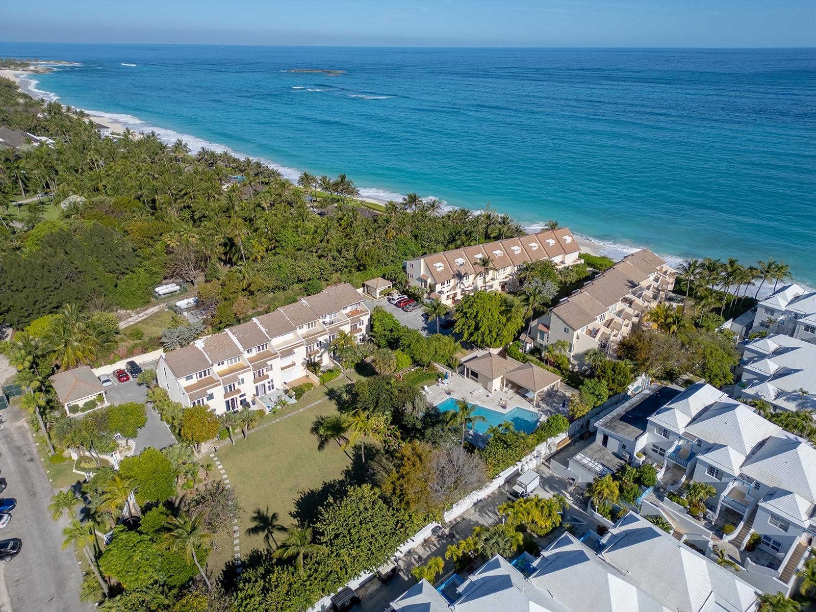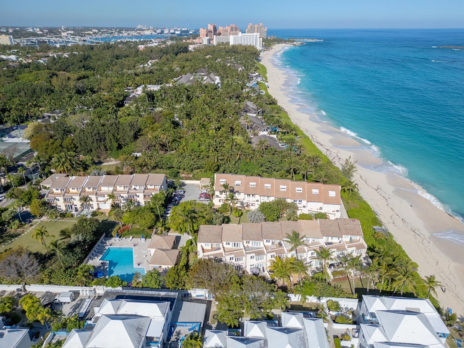 Mira Mar on Paradise Island is a quiet, gated community of just 23 townhouses in three buildings on stunning Cabbage Beach—one of the most beautiful beaches in The Bahamas! Unit #19 is a three-story, 3-bed, 3.5-bath townhouse. The open-plan kitchen, dining, and living areas flow seamlessly to the back patio, perfect for the indoor/outdoor lifestyle we love in The Bahamas! A private ground-floor patio overlooks a peaceful green space and an inviting pool. The second floor has two ensuite bedrooms filled with natural light. The east-facing suite features a balcony overlooking the pool and garden—ideal for morning coffee or an afternoon cocktail. The top floor offers a versatile third bedroom/TV room/office with a full bath, walk-in closet, and a lovely terrace facing the pool. This beachfront community boasts a property manager, assigned parking, gated entrance, large pool, and proximity to Atlantis and the Four Seasons Ocean Club.