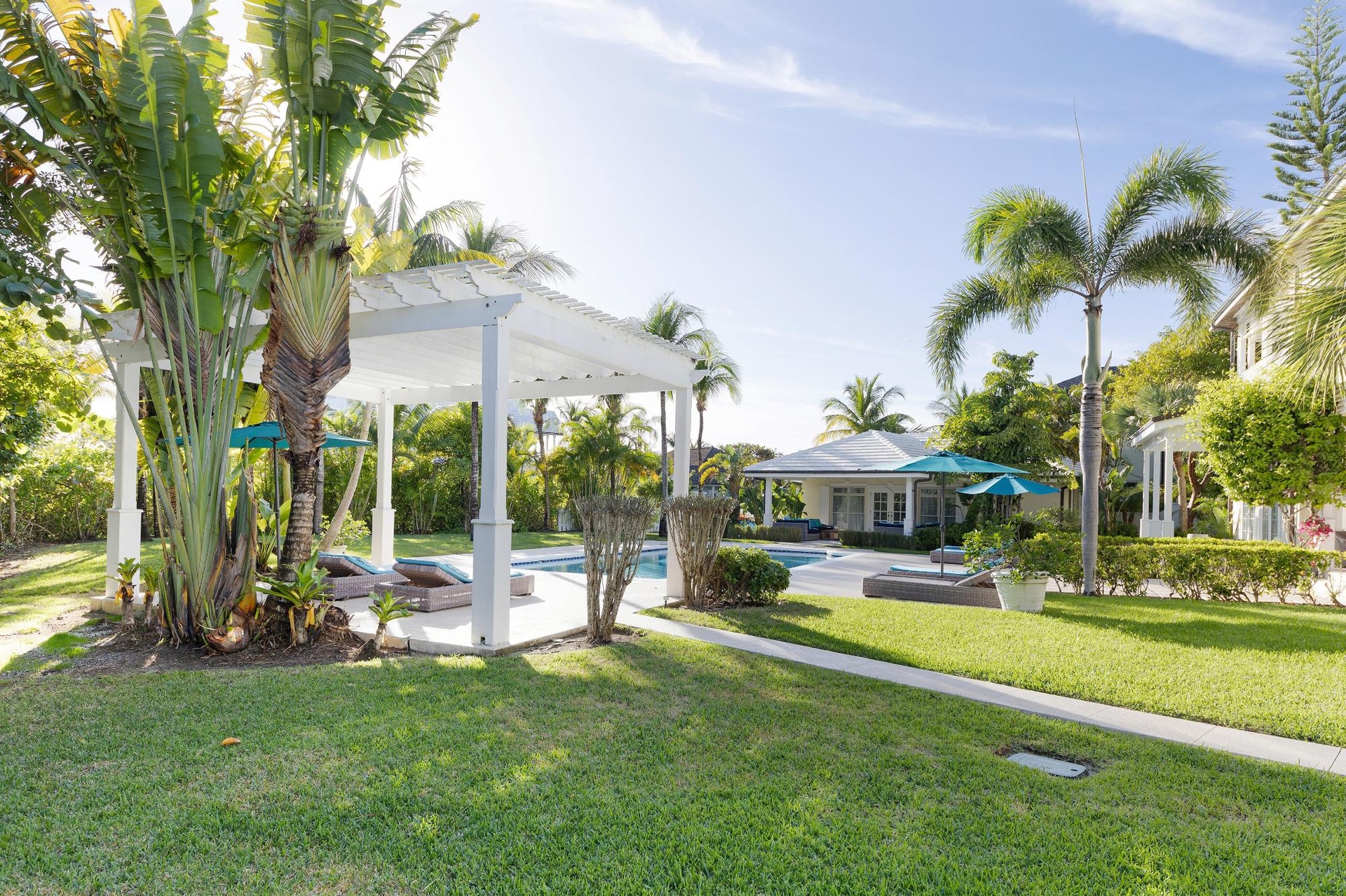 This exceptional 8 bed, 8.5 bath estate occupies a corner peninsula on Arbor Island in Old Fort Bay, set on a premier double lot with 260+ ft of deep-water frontage. Expansive outdoor spaces include lush tropical gardens, a large heated pool, breezy patios and a new waterside gazebo, plus two private guest cottages: a 2 bed/2 bath with kitchenette/wet bar and a 1 bed/1 bath retreat atop a fully enclosed 2 car garage. The main house features 5 spacious ensuite bedrooms, sun filled living areas with vaulted ceilings and a fully equipped open concept kitchen with premium appliances. Recent upgrades: custom perimeter fencing, 6 new patio doors, quartz countertops in kitchen/laundry, designer fixtures, plush carpets, and curated furnishings throughout. With direct deep-water access minutes from Nassau’s best beaches, this turnkey property blends modern luxury with Bahamian charm, ideal as a private estate, vacation home or investment.