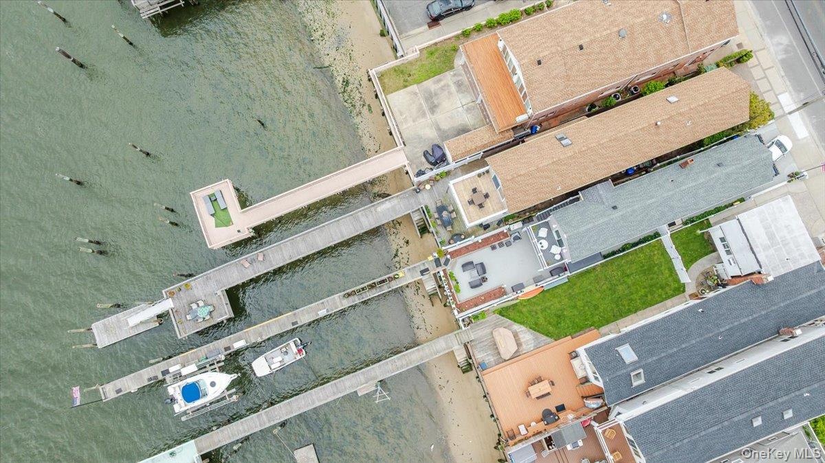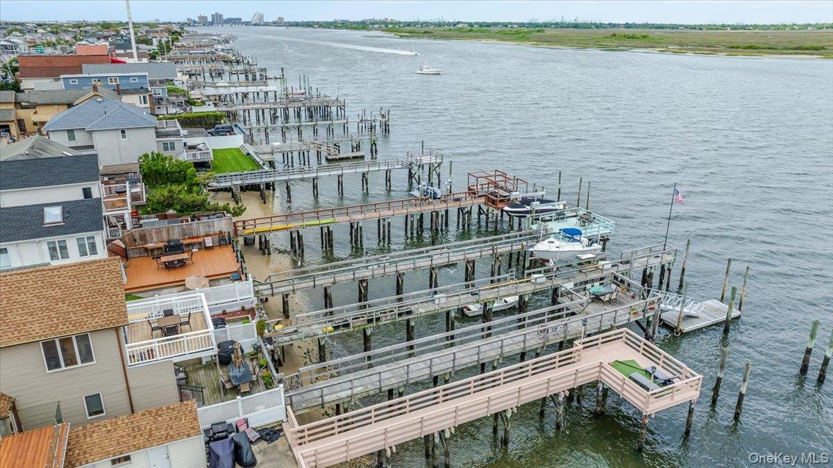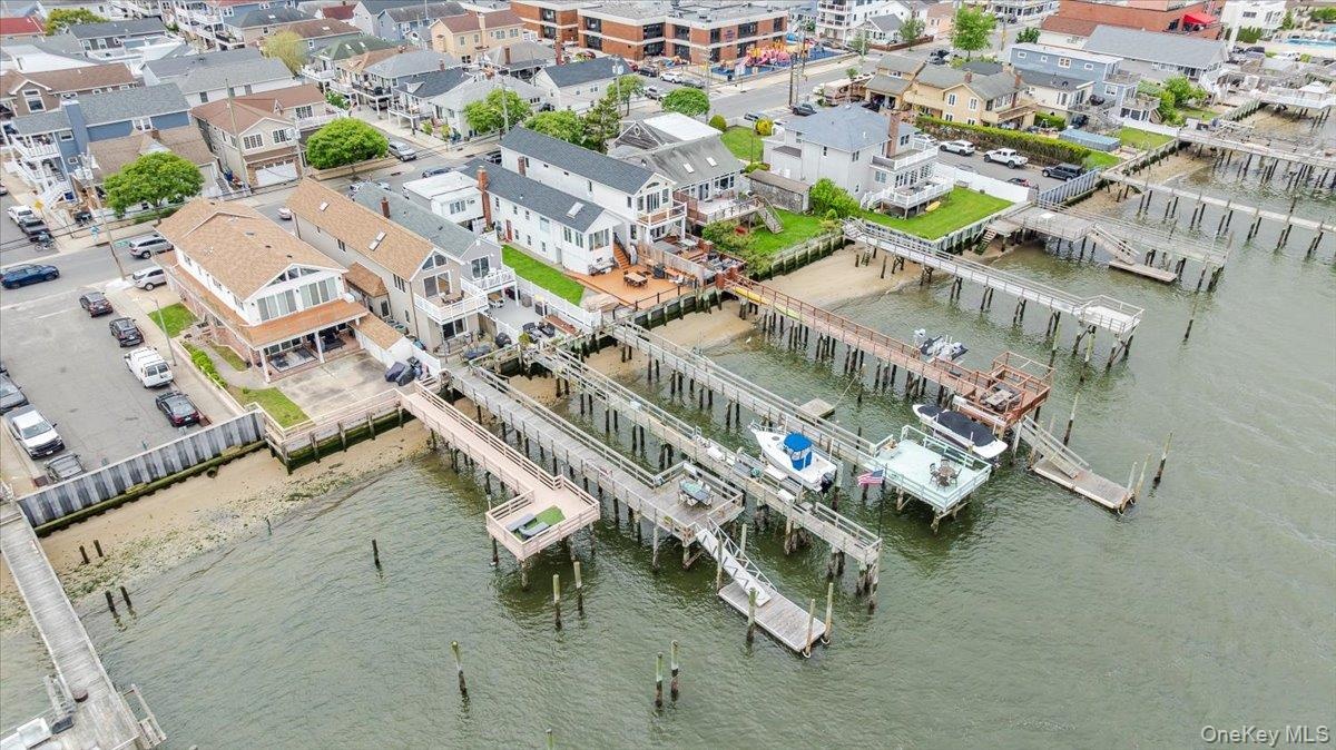 - Aerial view of property's location with a nearby body of water, numerous boat docks, and nearby suburban area