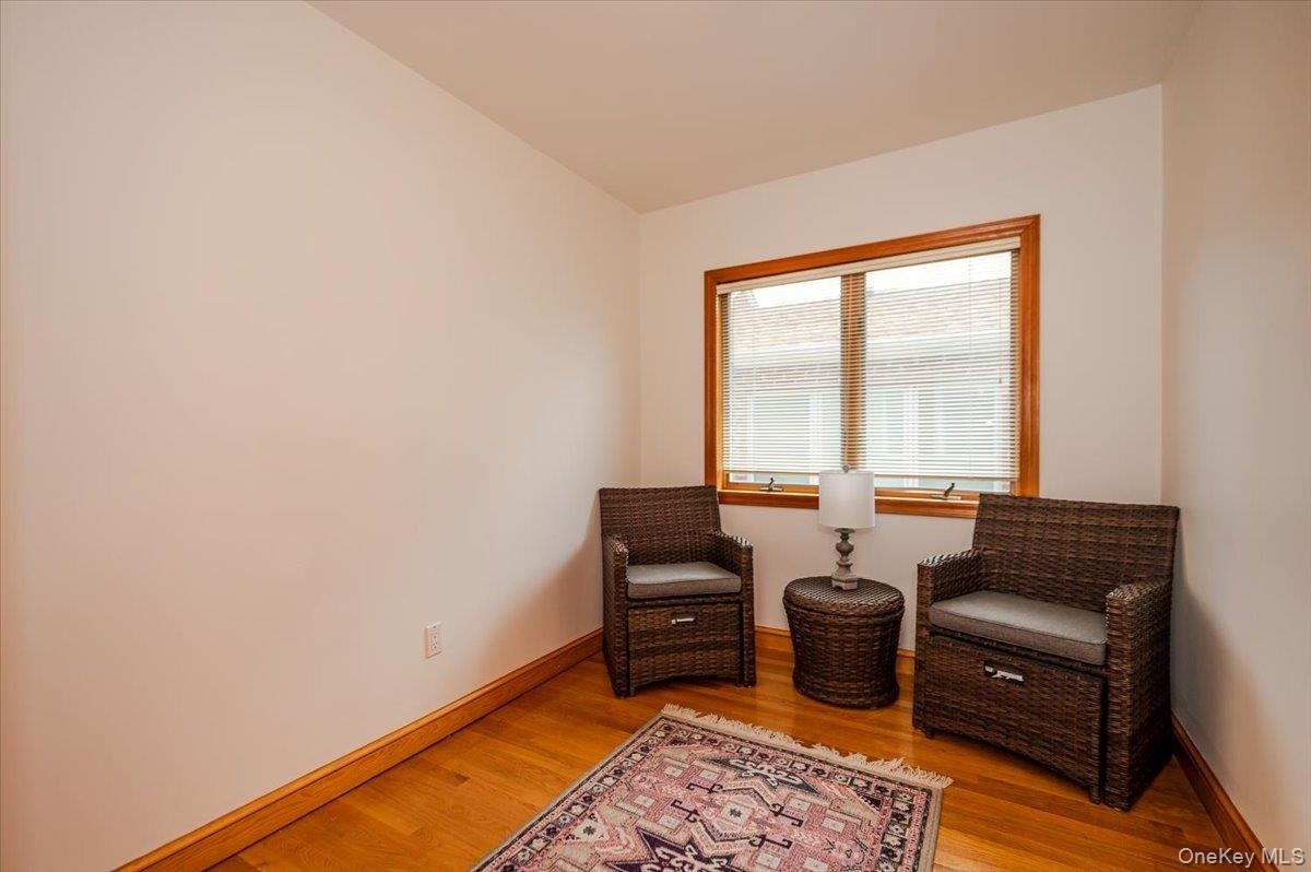 - Living area with light wood finished floors and baseboards