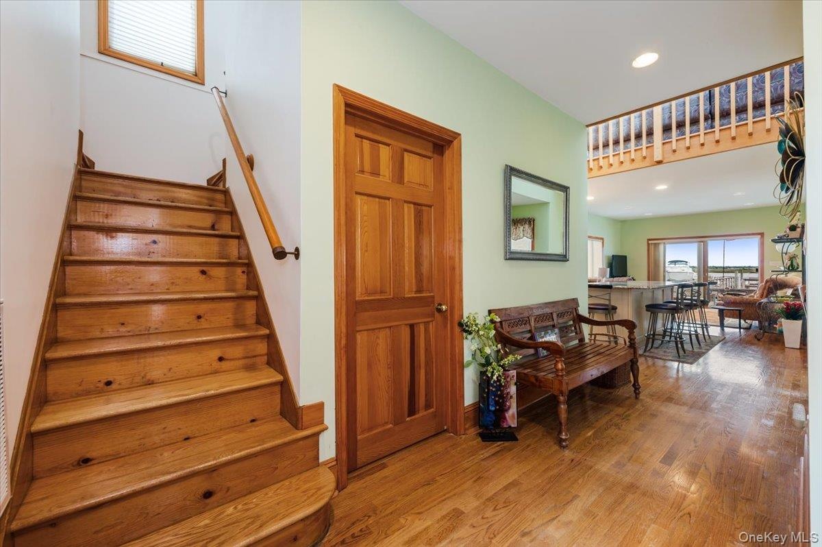 - Staircase featuring wood finished floors
