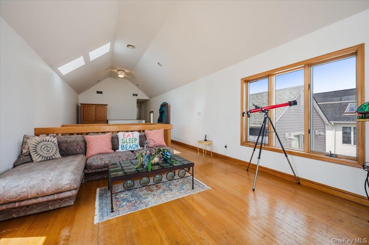 Just two blocks from the beach and steps from local dining, boutique shopping, and the LIRR for easy access to Manhattan, this location offers the best of all worlds. Inside, soaring vaulted ceilings, skylights, and central air create an airy, sun-filled sanctuary year-round.