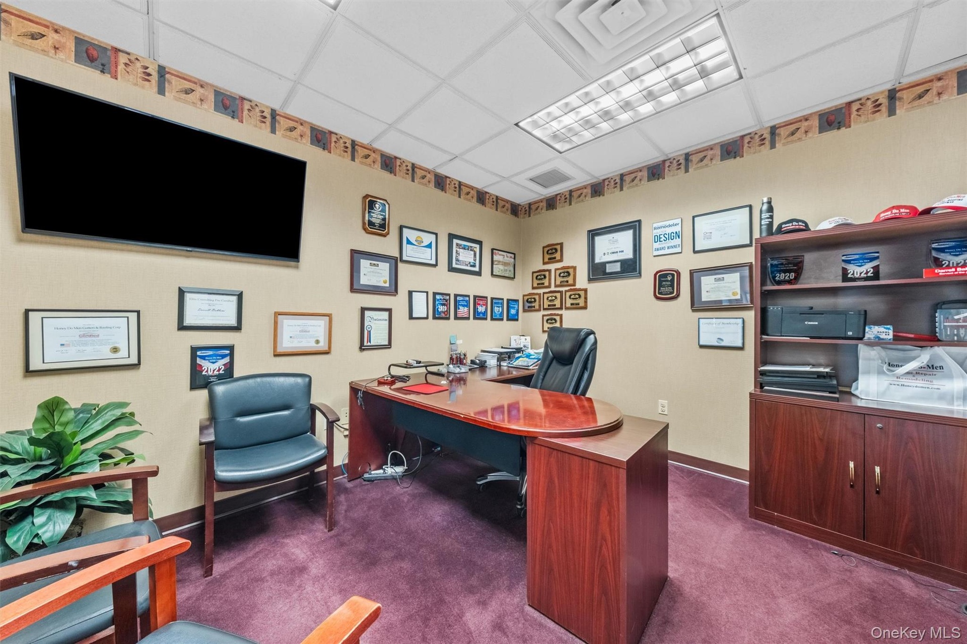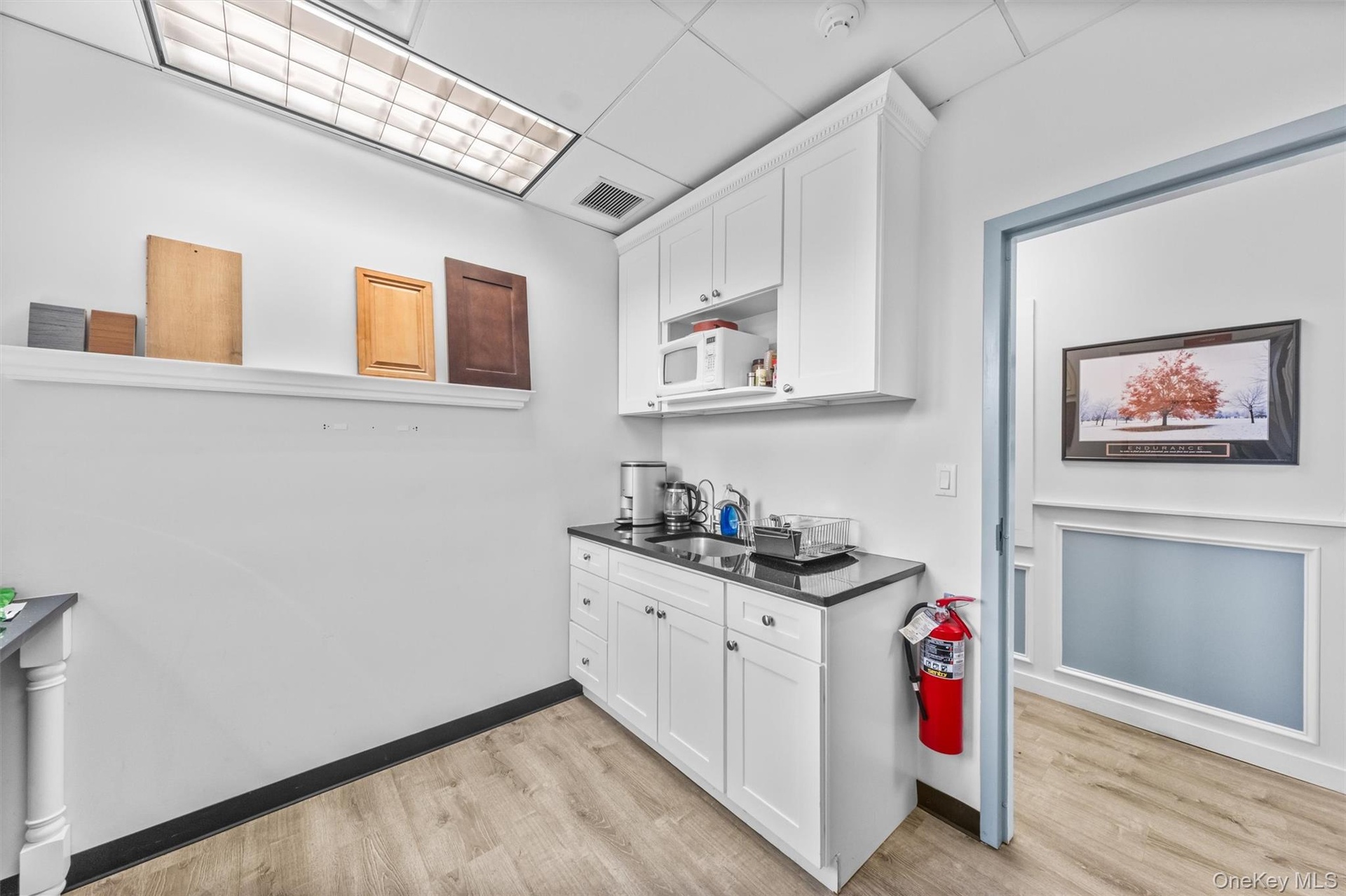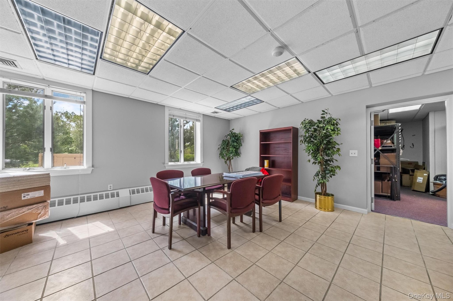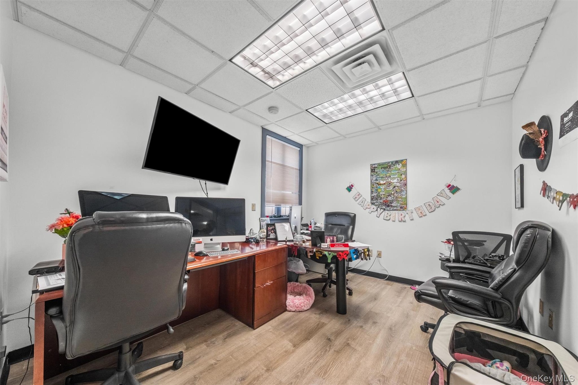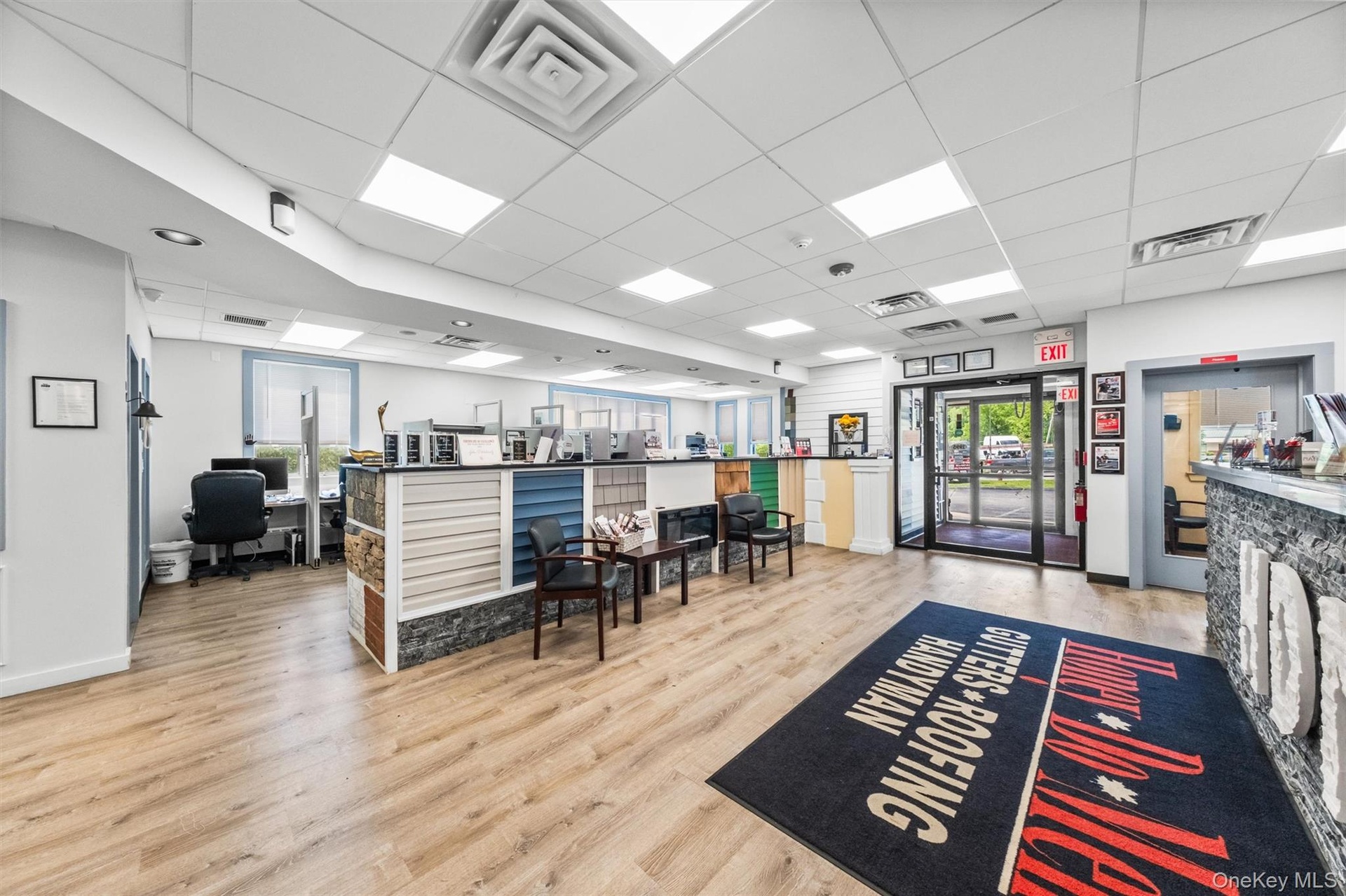 - Welcome area with a drop ceiling and a security system
