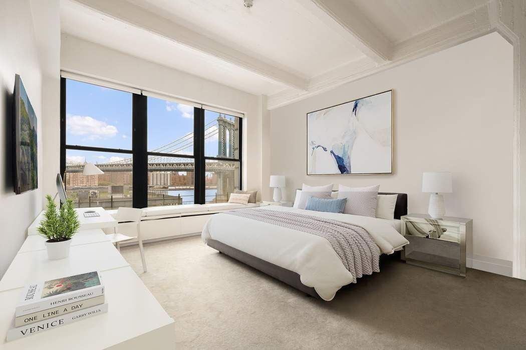 Situated on the northwestern corner of the coveted Sweeney Building, this sprawling 2,474 +/- sq.ft. DUMBO loft features two generously sized bedrooms, a beyond spacious home office (which can serve as a third interior bedroom), a secondary work from home space, and two and a half bathrooms. This home boasts breathtaking views of the Brooklyn Bridge, Manhattan Bridge, Downtown Manhattan Skyline, Empire State Building, East River, and Brooklyn Bridge Park.