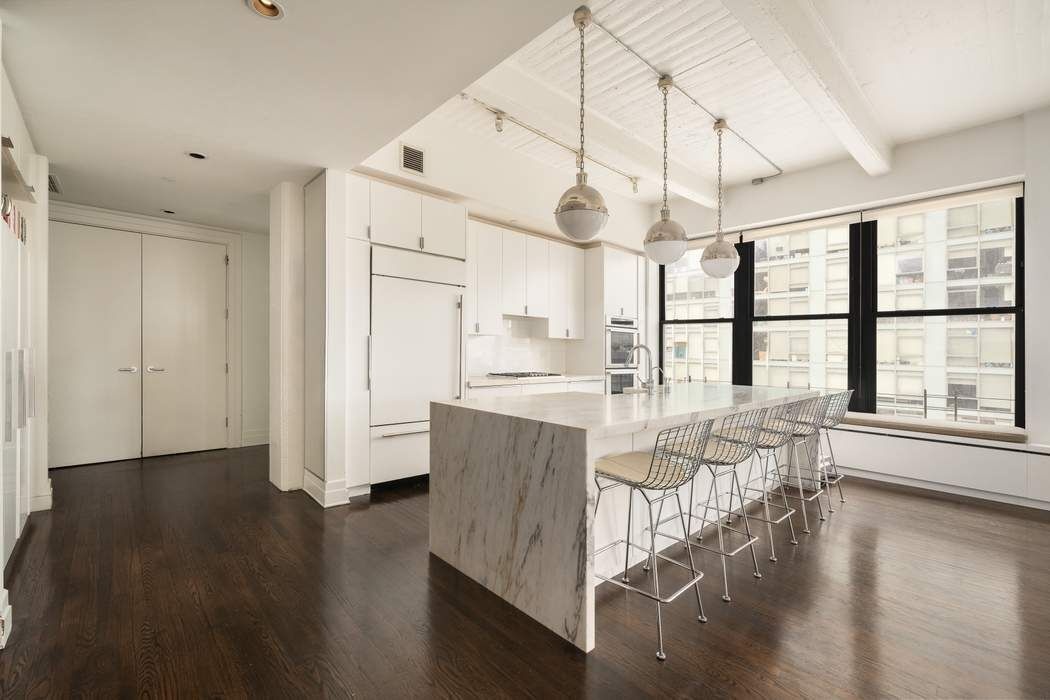 Surrounded by walls of oversized windows that wrap around the entire home, beautiful dark stained hardwood floors, 11’+/- high concrete beamed ceilings, and an open floorplan is a true definition of what DUMBO loft living truly is. Upon entering this stunning home, you approach a gracious gallery-style foyer leading into the main living space.