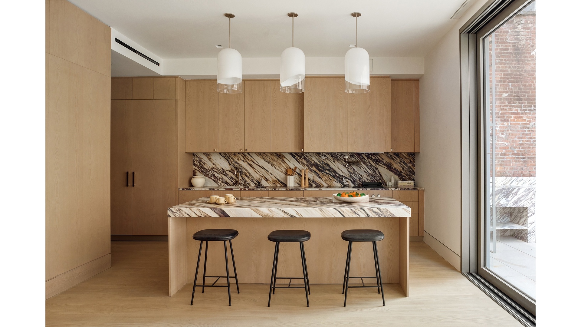 Designed by Paris Forino, the interior is expertly curated to meld past and present with its original cast iron columns and wood beams juxtaposed with an enviable array of contemporary elements including a KETRA lighting system, Sonos speakers in every room, keyless entry via LATCH and private AI assistant JOSH, which can amplify or dim lighting, open or close the shades, play your favorite song and beyond.
