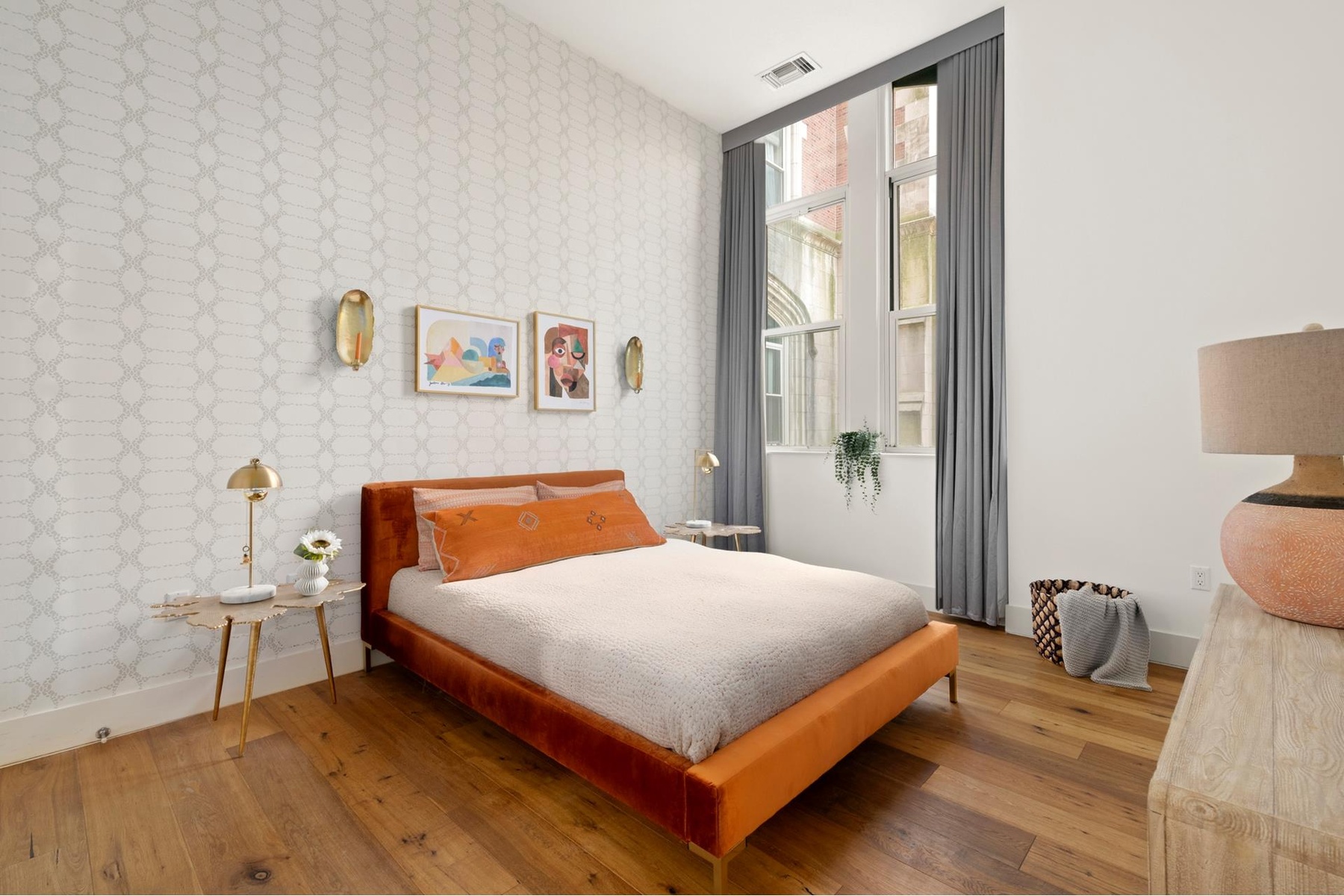Welcome home to this incredible 1,473sf north and west-facing corner SECOND FLOOR, 2BR/2BA true condominium loft with 12ft ceilings, distressed 8" wide-plank and herringbone oak floors, and stunning oversized arched double-hung windows that flood the living areas with natural light. Direct access from the living room to a wonderful large private terrace.