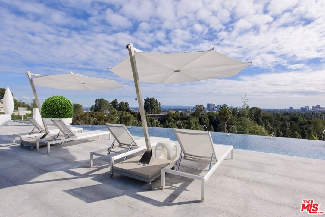 A sculptural glass and steel showpiece by renowned architect Edward R. Niles, this one-of-a-kind estate crowns a private knoll within the City of Beverly Hillsoffering full city services and global prestige. Tucked at the end of a quiet cul-de-sac with unobstructed views from downtown to the ocean, the residence is defined by sweeping circular glass walls, a curving steel structure, and a dramatic central courtyard that seamlessly integrates indoor and outdoor living.Designed as a living sculpture, the home features six bedrooms, seven bathrooms, a private elevator, a 7-car garage, infinity-edge pool, and light-filled interiors that capture panoramic vistas from every angle. Privately leased by high-profile individuals and featured in global media, this is a rare architectural iconnearly impossible to replicate under current Beverly Hills guidelines. Also offered for lease.