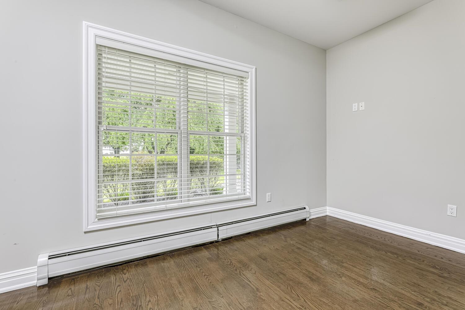 - Spare room featuring a baseboard radiator, dark wood-style floors, and baseboards