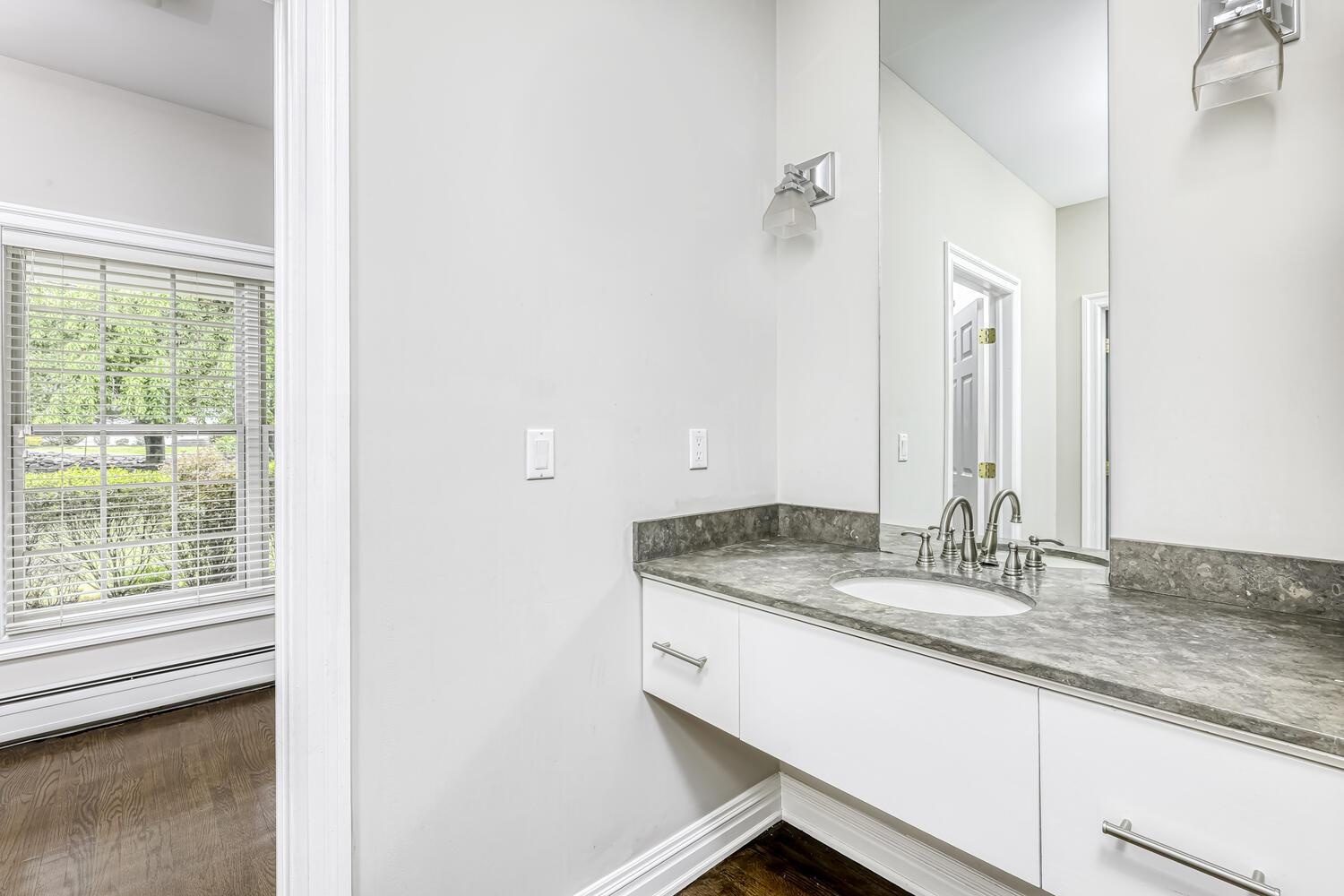 - Bathroom featuring vanity, healthy amount of natural light, and wood finished floors