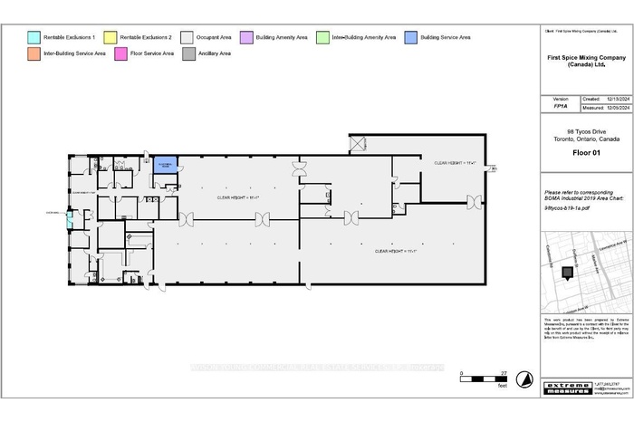 First time offered for sale - Freestanding building on prominent Tycos Drive in the North York Design District. Truck level door accommodates 53' trailers. Currently used as a temperature controlled dry food processing and packaging facility. Floor drains available. Vacant possession to be provided.
