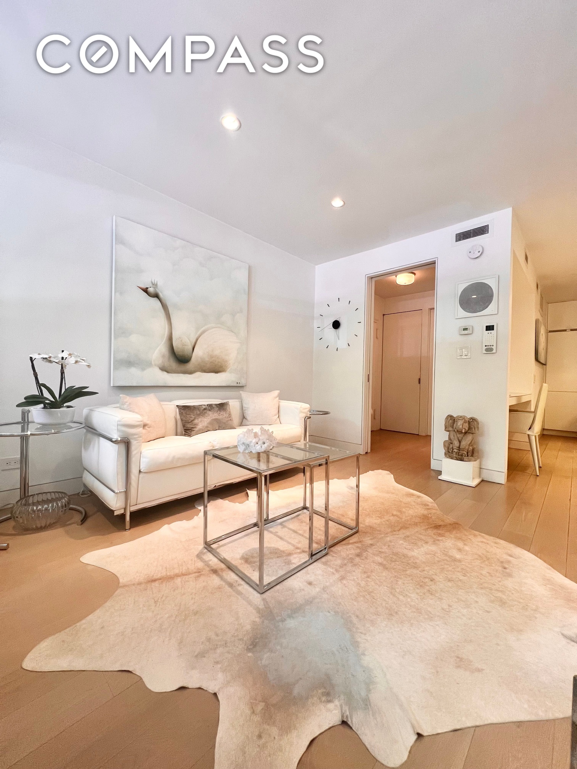 Gleaming wide oak floors and multiple downlights are featured throughout. Central air-conditioning is a bonus. The sleek white contemporary kitchen features a writing desk, and the mint marble bathroom allows for move-in-ready living: a built-in Murphy bed allows you to use this as an office and/or living space, the ultimate city pied-e-terre. And of course, a coveted Key to the Park.