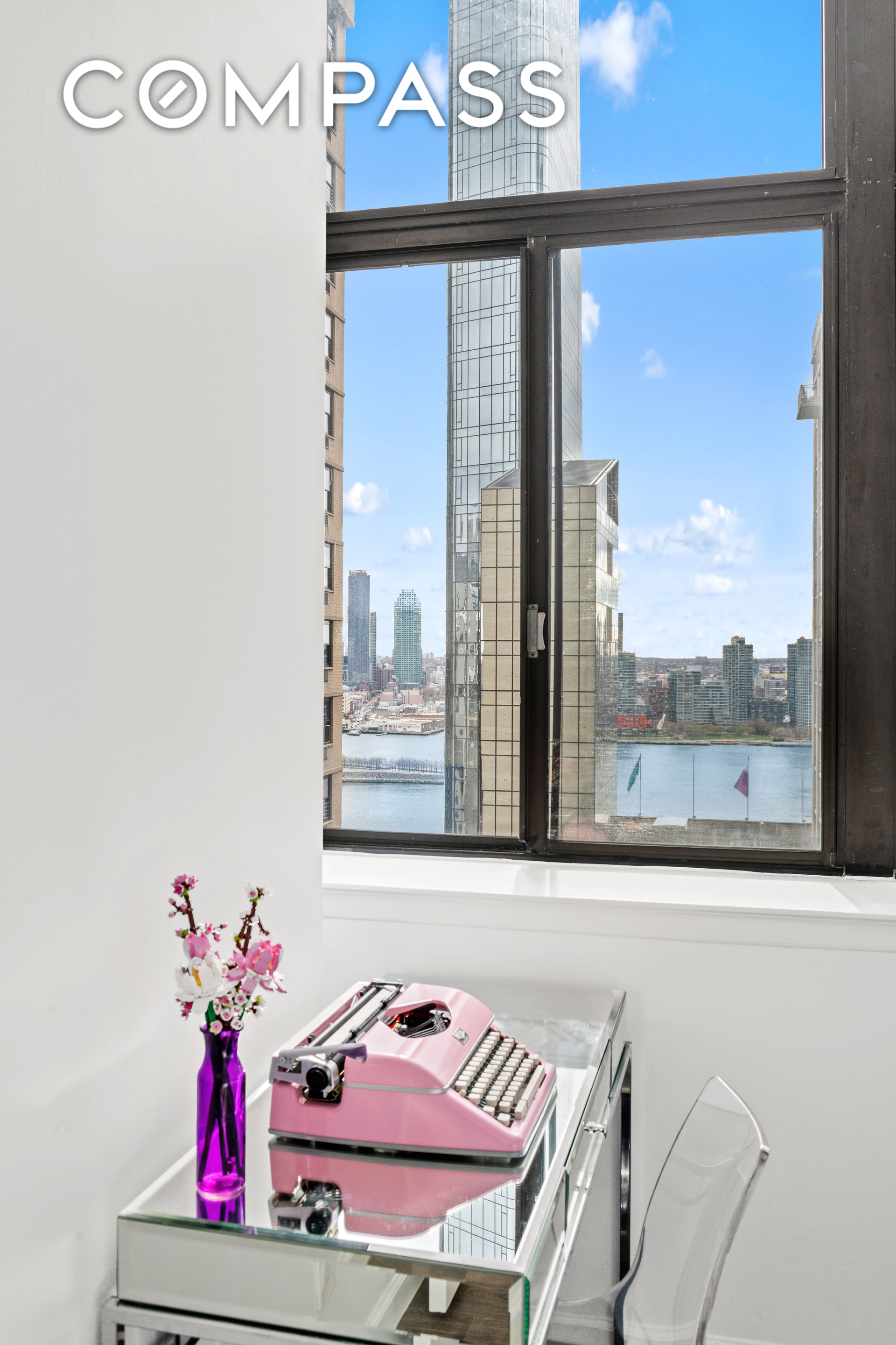 Perched on the 19th floor of the prestigious Turtle Bay Towers, this radiant and sophisticated loft true one-bedroom offers an unparalleled blend of luxury and comfort. With soaring 14-foot ceilings and dramatic, oversized windows, this residence is drenched in natural light and boasts sweeping views of the East River and Long Island City.