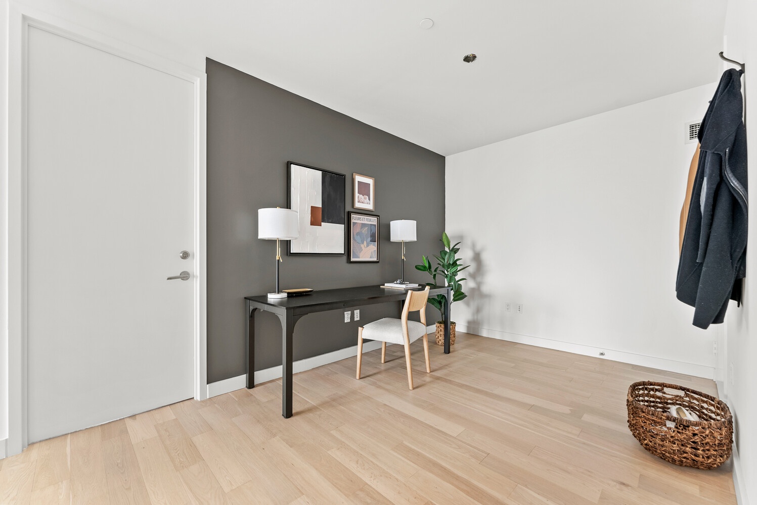 This spacious, newly renovated corner unit features lofty 10-foot ceilings, oversized 6-foot windows, and an expansive private terrace, providing abundant natural light and panoramic views of the Manhattan skyline, rivers, and iconic bridges. The thoughtful floor plan includes two true bedrooms, a home office to create your personal work-from-home haven, and three full bathrooms.