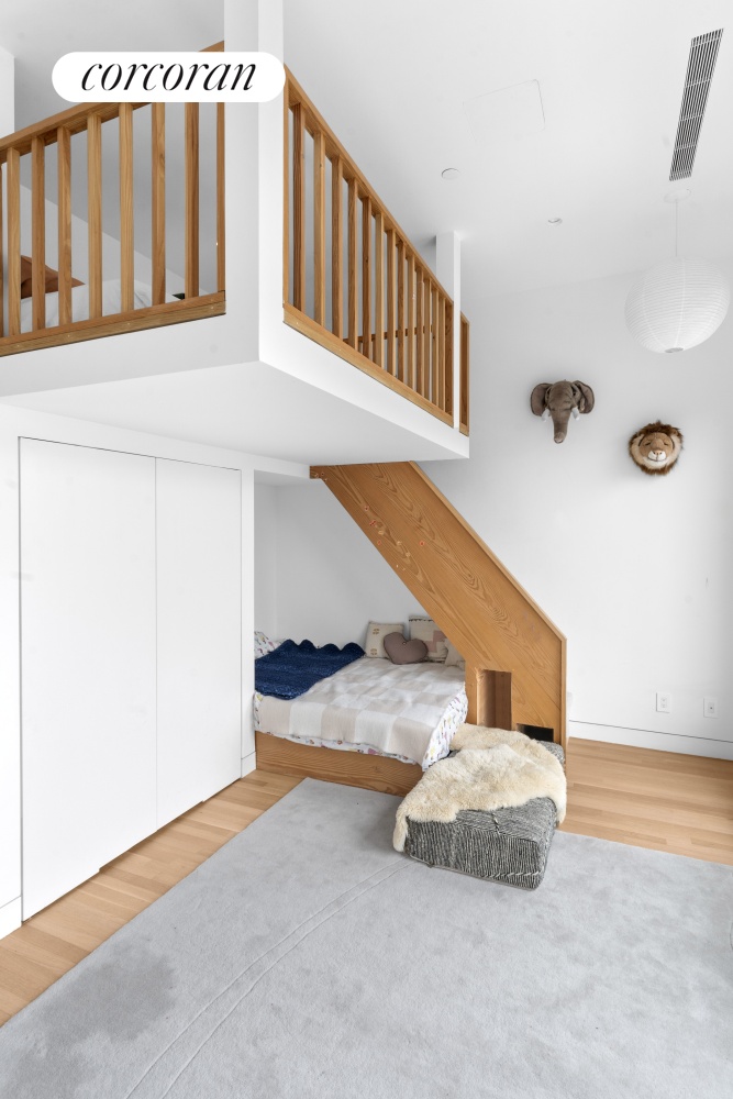 At the top, discover a charming third "bird's nest" bedroom within the roof addition, which opens out to a wraparound mahogany roof deck - a perfect escape with skyline views.