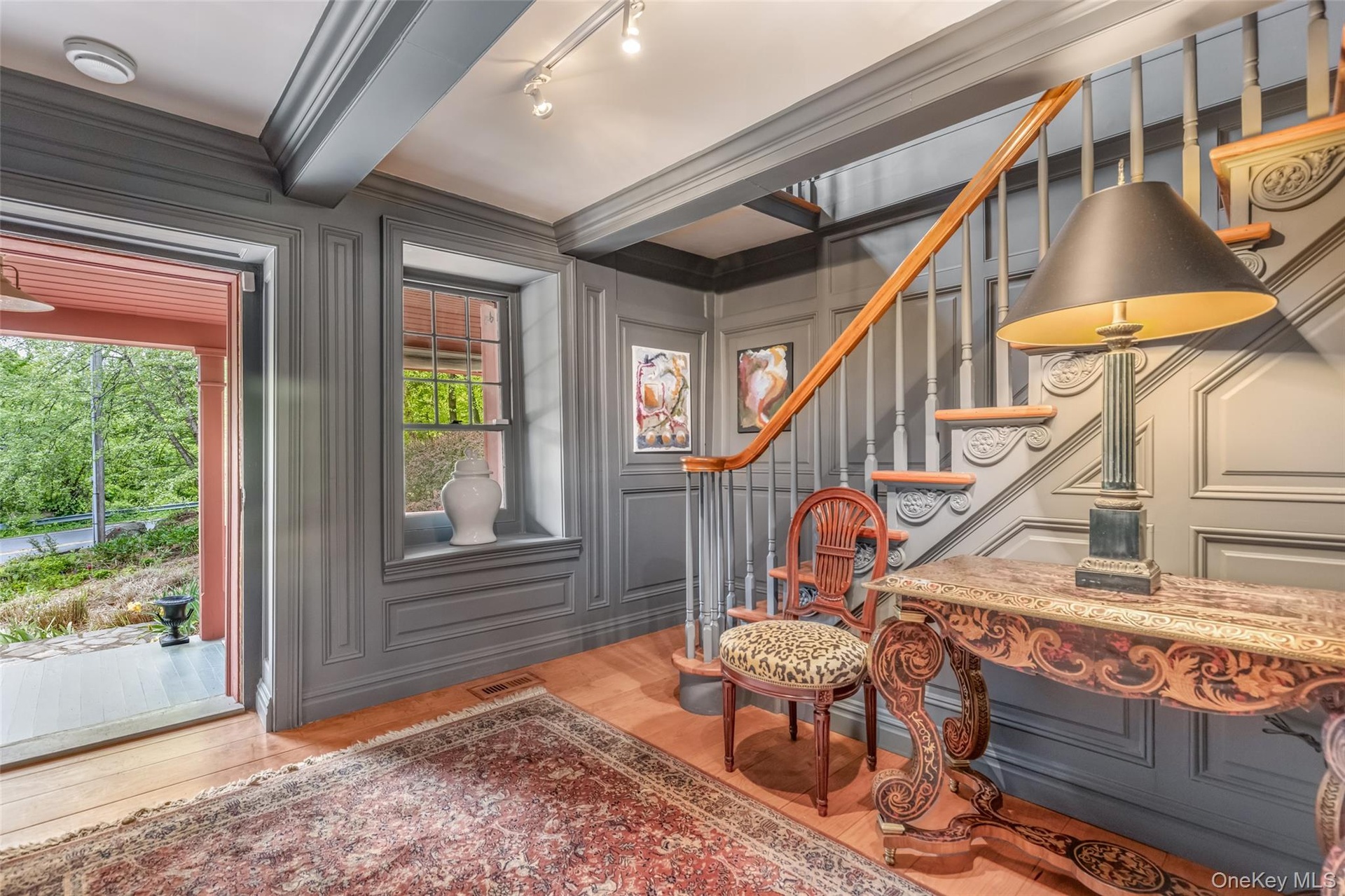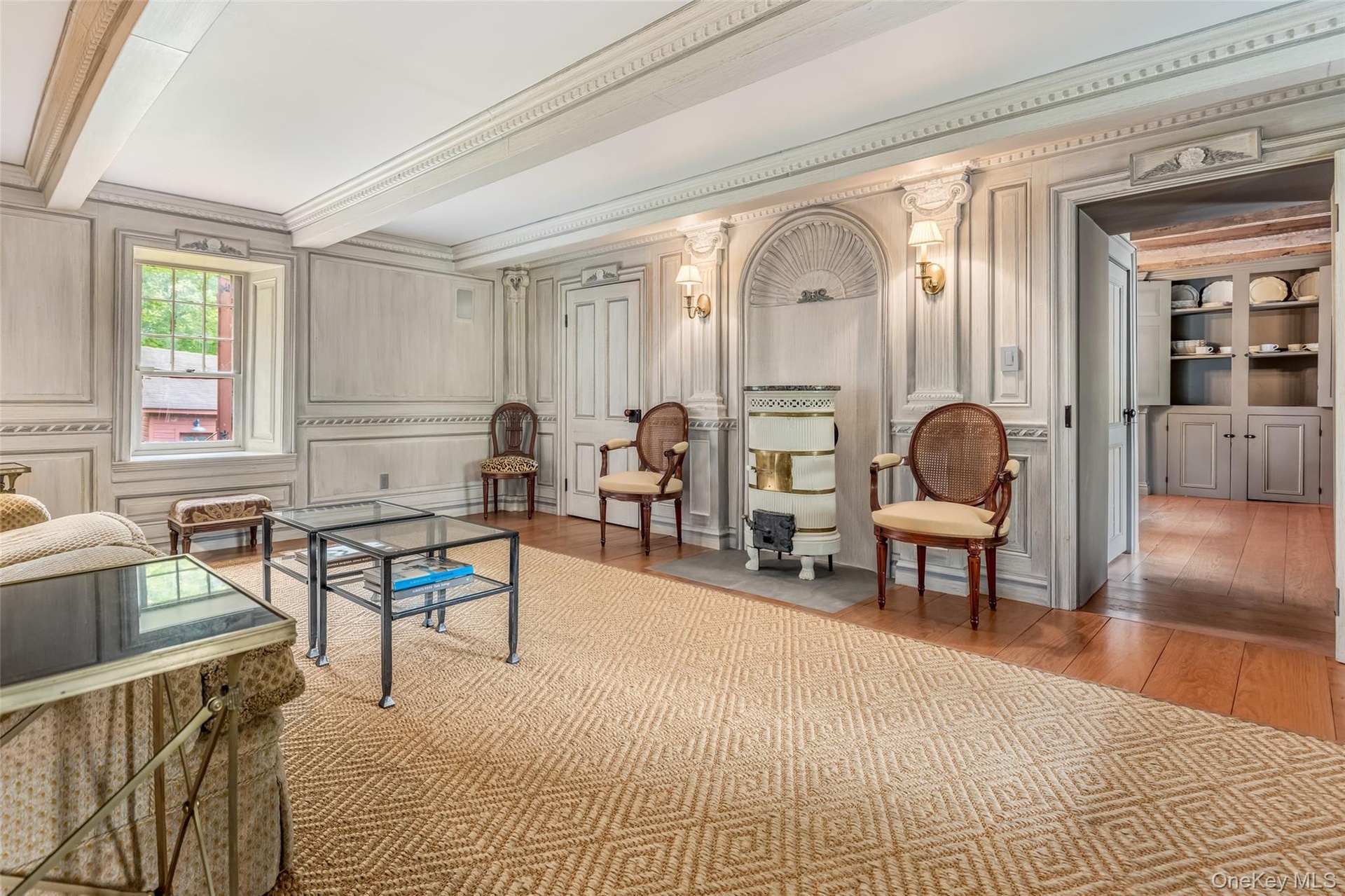 c. 1775. Step into a world where historic charm meets timeless elegance. Known as The Old Toll House, this meticulously restored stone residence is a rare fusion of 18th-century charm and modern comfort. At the heart of the home lies a grand and inviting kitchen, where a massive stone hearth- framed with imported Belgian tiles- serves as the room's dramatic focal point. Hand-hewn beams lend warmth and architectural authenticity, while an adjacent grotto with copper-topped counters and generous storage provides space for culinary creativity and organization. The formal dining room features an original fireplace, built-in cabinetry, and distinctive fabric-clad walls, creating a dramatic and memorable setting for entertaining. The living room showcases intricate wood details, while Brazilian wide-board pine flooring flows throughout. A mahogany-accented bathroom completes the main level with a refined touch of artistry and sophistication. Upstairs, three versatile bedrooms offer flexible living options, including a dedicated library—ideal as a home office, reading retreat, or creative sanctuary. A second full bath, with custom tilework, adds convenience while honoring the home's character. Set on 1.4 acres, the grounds are framed by expansive gardens, mature trees, and rock walls. Ideally located just five minutes from New Paltz, and ten minutes from Kingston's vibrant Rondout District, offering easy access to local markets, fine dining and outdoor recreation. This is a home for those who appreciate craftsmanship, history and enduring beauty—an exceptional opportunity to own a piece of Hudson Valley heritage, perfectly preserved for modern-day living.