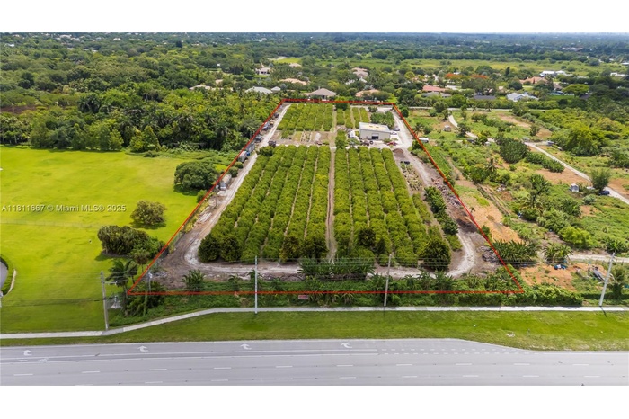 8.9 Acres!! Unique property in Davie surrounded by million-dollar homes in a fast-growing, family-friendly area with "A" rated schools. Fronts Flamingo Rd, backs Flamingo Gardens, and borders the gated Ridge at Laurel Oaks. Fully fenced with gated access. Operating tropical fruit grove since 1987 with ~1,000 starfruit trees and other varieties (macadamia, avocado, banana, etc.). Features include a 5" well, advanced irrigation, and a 4,800 sf insulated steel building (Cat 5+ rated) with 1,140 sf A/C space, 2 kitchens, 2 baths, and 3 offices. Industrial features: mezzanine, 800A power, racking, security system. Includes prepped 1-acre homesite for a 4,000 sf home. Ideal for family compound, agribusiness, or investment. Agriculturally assessed, very low taxes.