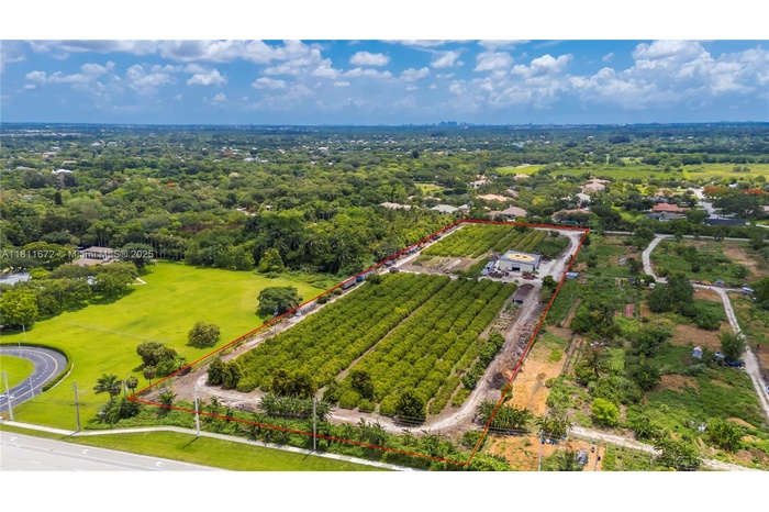 8.9 Acres! Unique property in Davie surrounded by million-dollar homes in a fast-growing, family-friendly area with "A" rated schools. Fronts Flamingo Rd, backs Flamingo Gardens, and borders the gated Ridge at Laurel Oaks. Fully fenced with gated access. Operating tropical fruit grove since 1987 with ~1,000 starfruit trees and other varieties (macadamia, avocado, banana, etc.). Features include a 5" well, advanced irrigation, very low ag taxes, and a 4,800 sf insulated steel building (Cat 5+ rated) with 1,140 sf A/C space, 2 kitchens, 2 baths, and 3 offices. Industrial features: mezzanine, 800A power, racking, security system. Includes prepped 1-acre homesite for a 4,000 sf home. Ideal for family compound, agribusiness, or investment. Agriculturally assessed, very low taxes.
