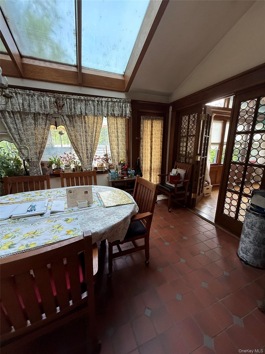 - Tiled dining room with vaulted ceiling and healthy amount of natural light