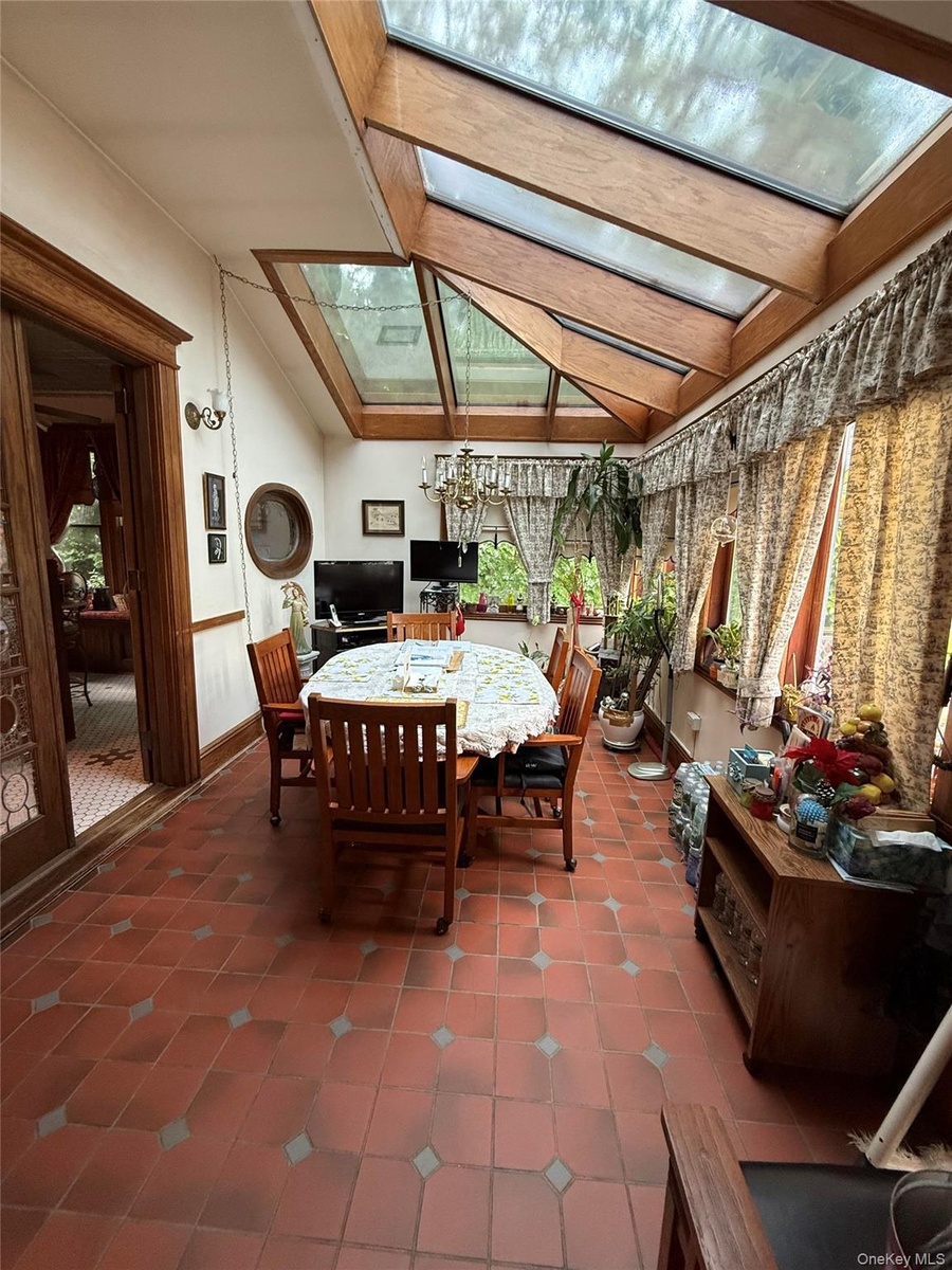 - Sunroom with a skylight, lofted ceiling, and plenty of natural light