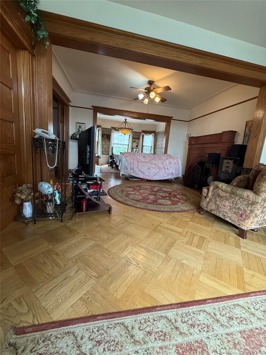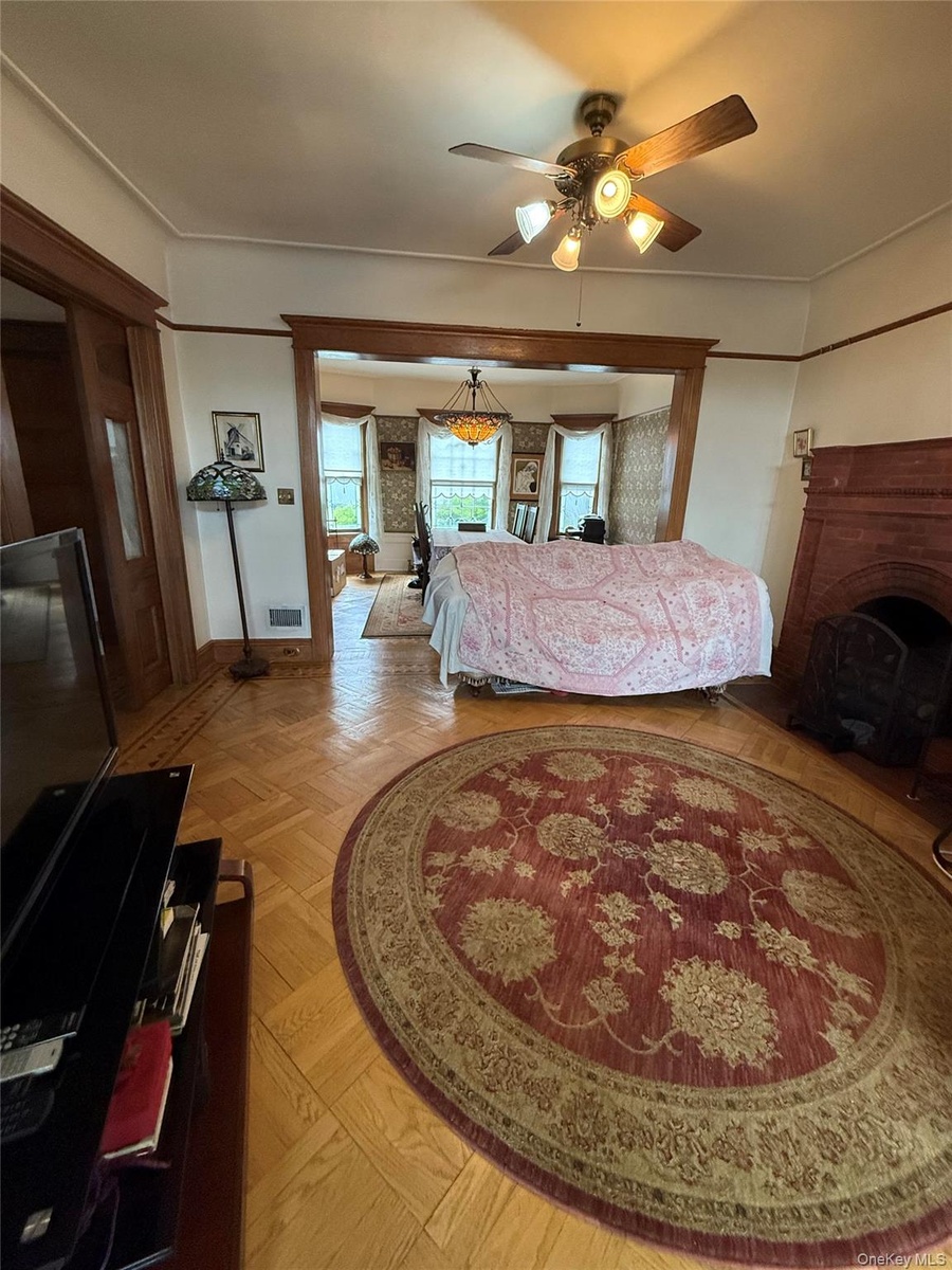 Built over four levels, the home showcases authentic Victorian charm with exquisite hardwood floors, doors, and moldings throughout. Boasting five bedrooms, three full baths, and two half-baths, it seamlessly combines timeless elegance with modern conveniences. Modern amenities include a six-zone heating system, central air conditioning, and a luxurious master bath with a Roman Jacuzzi tub, sauna, and water closet with a bidet.