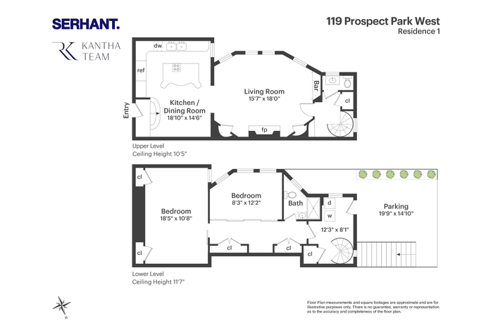 Located directly on Prospect Park, Residence 1 at 119 Prospect Park West is a beautifully designed two bedroom, one and a half bathroom duplex with PRIVATE PARKING.