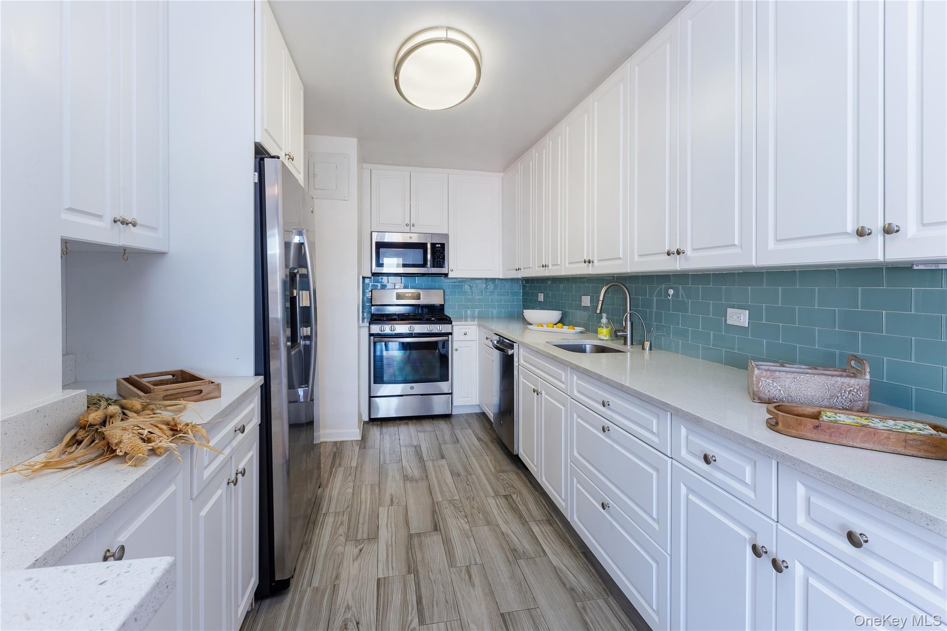 This home boasts beautiful warm color bamboo flooring throughout and central heat and air for year-round comfort. The expansive 19" x 6" balcony adds to the charm, offering a peaceful space for relaxation or a small urban garden. Maintenance includes: heat, hot water, and all amenities. The Winston Churchill is a full-service luxury co-op building, offering top-tier amenities including 24-hour doormen, an Olympic-sized heated indoor pool, saunas, a full-size gym, community room, playroom, and a 24-hour laundry room. Additional perks include bicycle storage and garage parking at an additional cost. The building is pet-friendly, making it perfect for all lifestyles. Conveniently located, this home is just a short distance from bus stops, Metro North train access, shopping, parks, and schools.