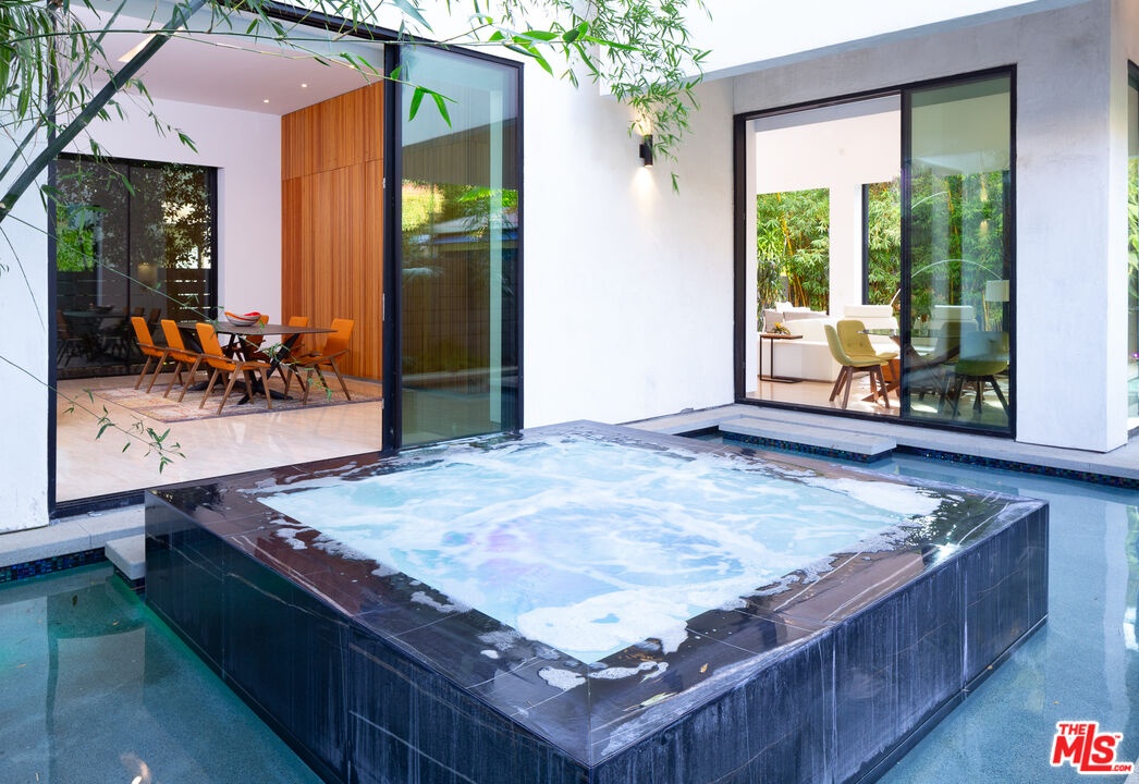 Gated & private, step inside this unique & exquisite new luxury residence.  A Zen-like atmosphere offers residents a feeling unmatched in most Beverly Grove homes. Custom built & meticulously designed, the home is great for those looking to enjoy their own exclusive sanctuary or for those looking to impress & entertain their most discerning guests. The main level consists of a foyer, powder room, an open, large & masterful living room & a bright stunning kitchen w/sitting area. Indulge outside in a magnificent spa w/ a large wrap around pool. The upper level consists of five proper bedrooms a laundry room & access to a large rooftop deck. For those looking for additional comfort, the master suite offers unparalleled privacy including 180-degree windows, a balcony, large walk-in closet & a full master bath equipped w/ a steam shower. The property's home automation system allows for convenient control of lights, security system, cameras & music. Enjoy the comforts of an extra wide 2-car garage w/ two car charging ports.