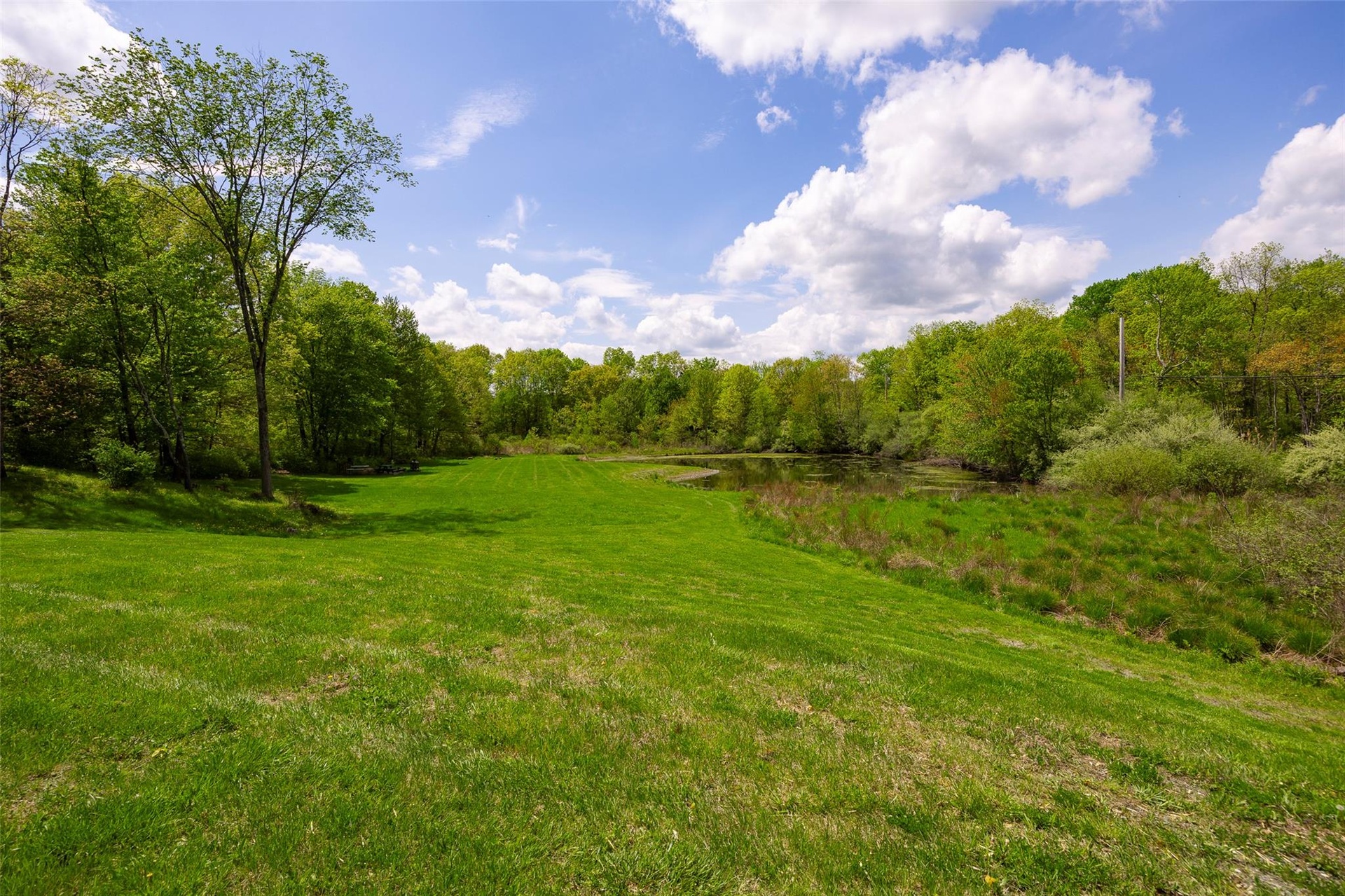 On a country road overlooking a beautiful spring-fed pond sits a 3,228 sq ft cedar-sided traditional home. Set on 23 stunning acres of open fields, mature trees, and bucolic landscaping, just outside from the Village of Millbrook. Inside, the home features a spacious and flexible layout with 4 bedrooms, 3 full baths, central A/C, and a gas fireplace. The upper level welcomes you into an open living room and dining area with access to a large deck, perfect for entertaining. The kitchen is well-situated, while two guest bedrooms share a full bath. The primary ensuite opens into a sunroom overlooking the pond, ideal for morning coffee, reading, or meditation.