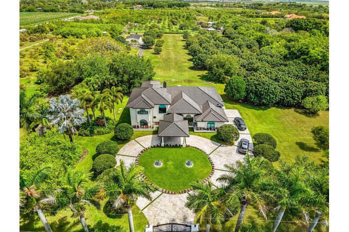 Stunning Redlands Estate — Nestled on expansive 5 acre lot, this custom 4BD/3.5BA residence (5,490 SF) is paired with a fully independent 3BD/2BA guest house (1,689 SF) offering the perfect balance of luxury & privacy. A gated entry, circular driveway, & porte-cochère create a grand welcome into a property where timeless architecture meets refined country living. The home showcases soaring ceilings, impact glass, & a dramatic custom wood entry door. The open-concept kitchen is a centerpiece of design with sleek modern cabinetry, premium Consentino surfaces, and bespoke fittings. Seamless wood paneling, expansive porcelanato flooring, custom-crafted doors, & fully built-out closets speak to the meticulous attention to detail. This estate offers a rare blend of privacy, elegance, & lifestyle
