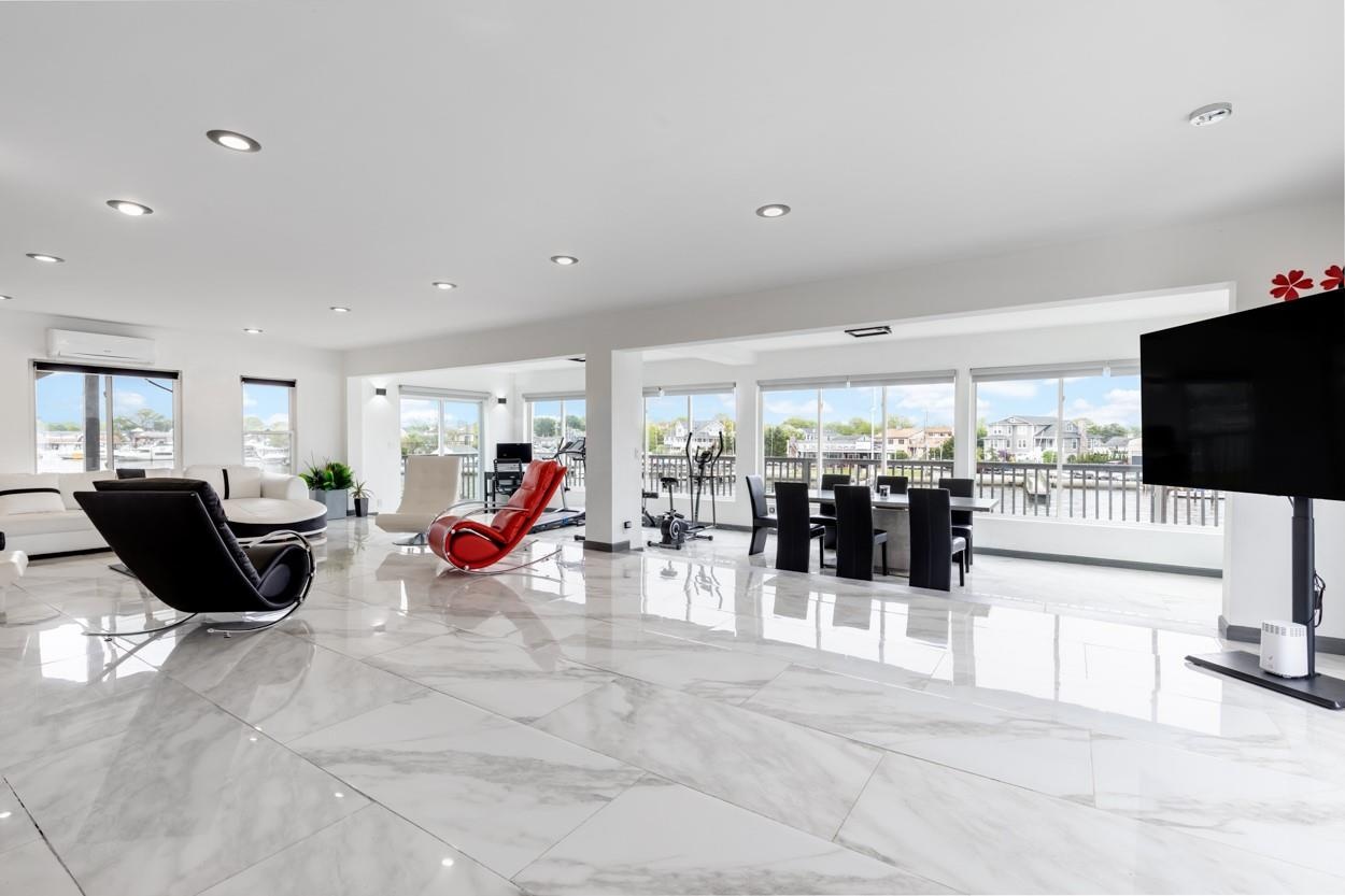 Welcome to 200 Clocks, a rare waterfront opportunity offering 200 feet of bulkhead and boat slips on three sides, just minutes from Breezy Point Park and the open bay. Set on 1.8 acres, this parcel includes a stunning 3,710 sq ft modern luxury home and approved subdivision plans for two lots—ready to be finalized at buyer’s request, if desired.