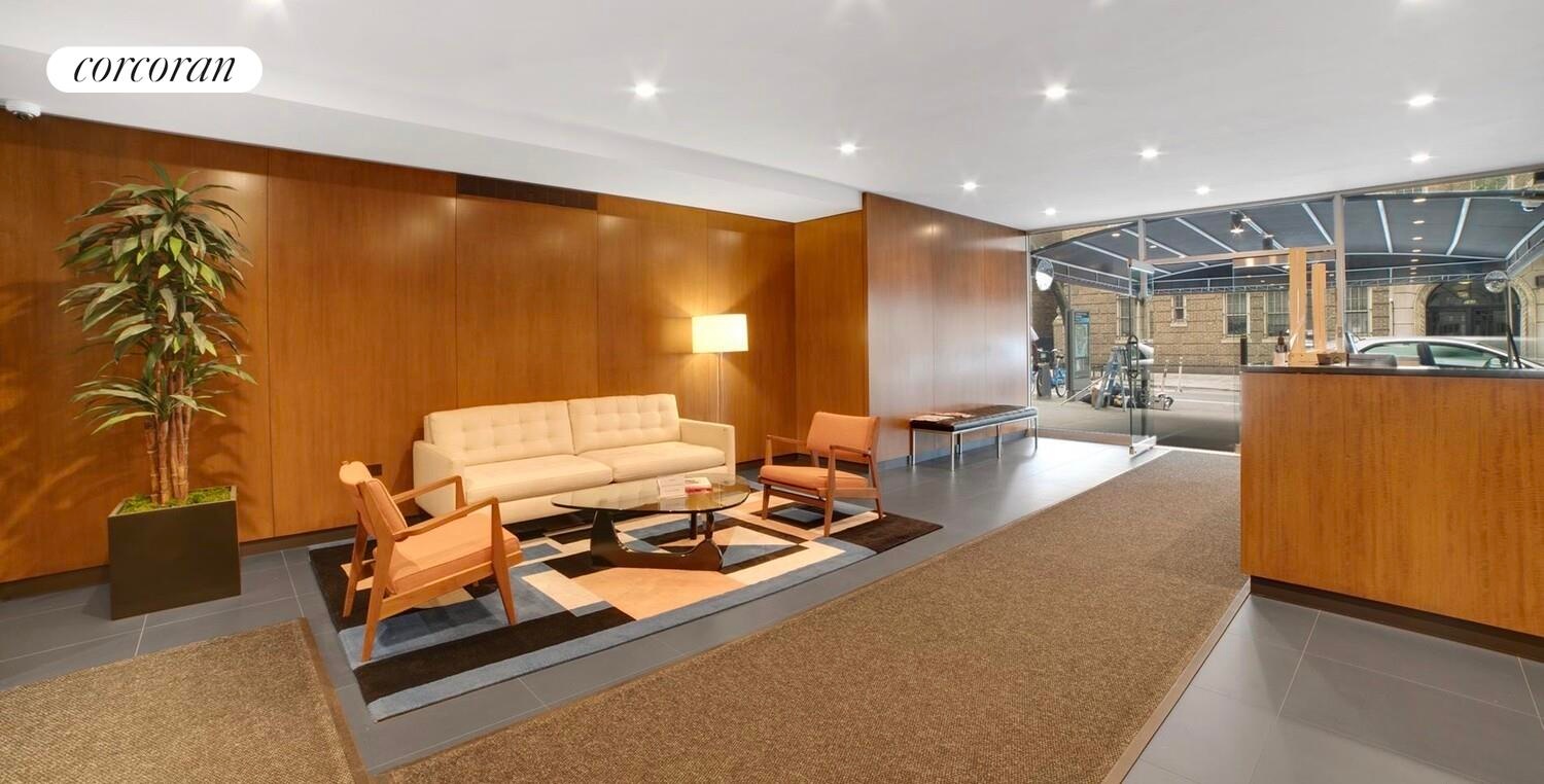 The Cambridge is a luxury 135-unit postwar, white brick co-op on a beautiful tree-lined block in the heart of Greenwich Village. This full-service West Village co-op building includes an outstanding staff, with a full-time doorman, live-in super and full-time handyman on the premises. There is a laundry room, bike room, storage room, a spectacular landscaped furnished roof deck with sweeping city and water views. The building is even pet friendly.