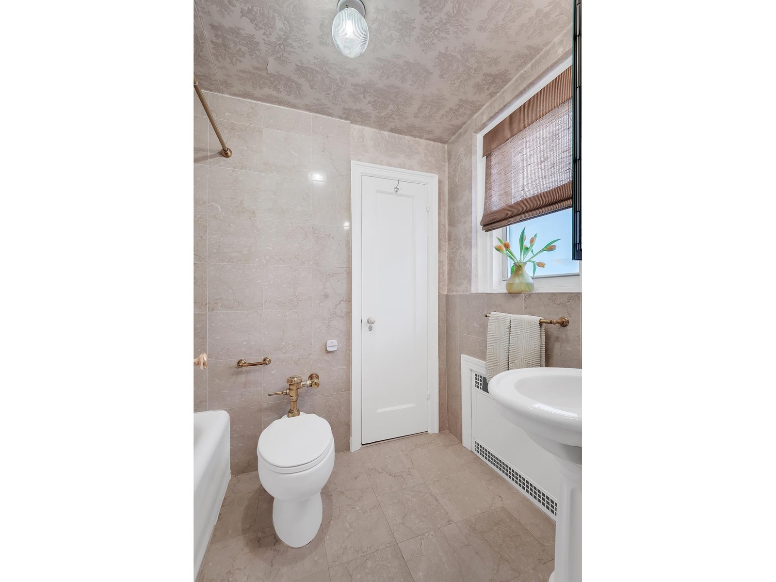 The elegant living room is anchored by a wood-burning fireplace and enjoys good natural light through large windows. The spacious primary bedroom also features its own fireplace, creating a cozy and luxurious retreat. The second bedroom offers scenic glimpses of the majestic East River, making it a perfect guest room, home office, or den.