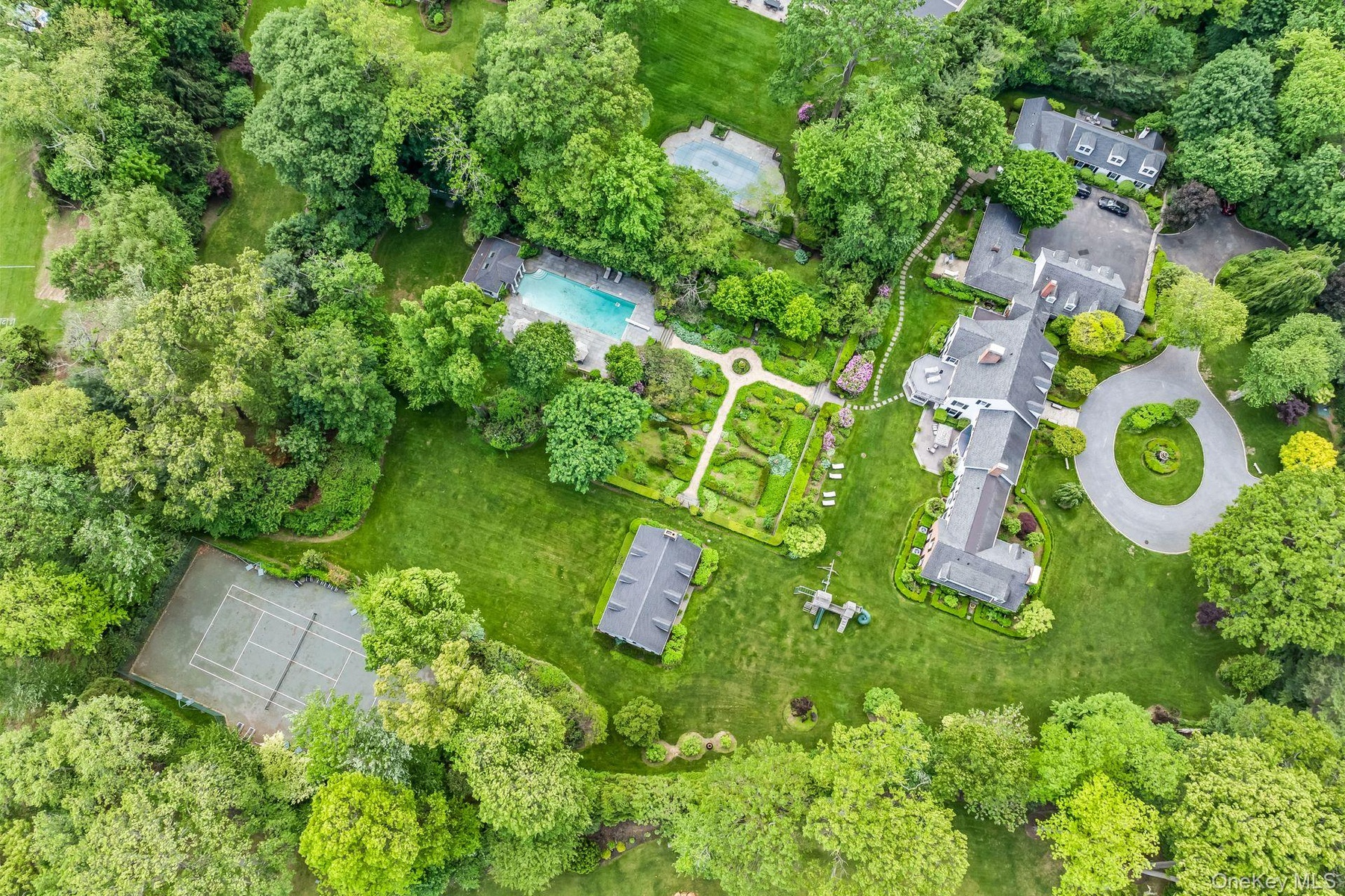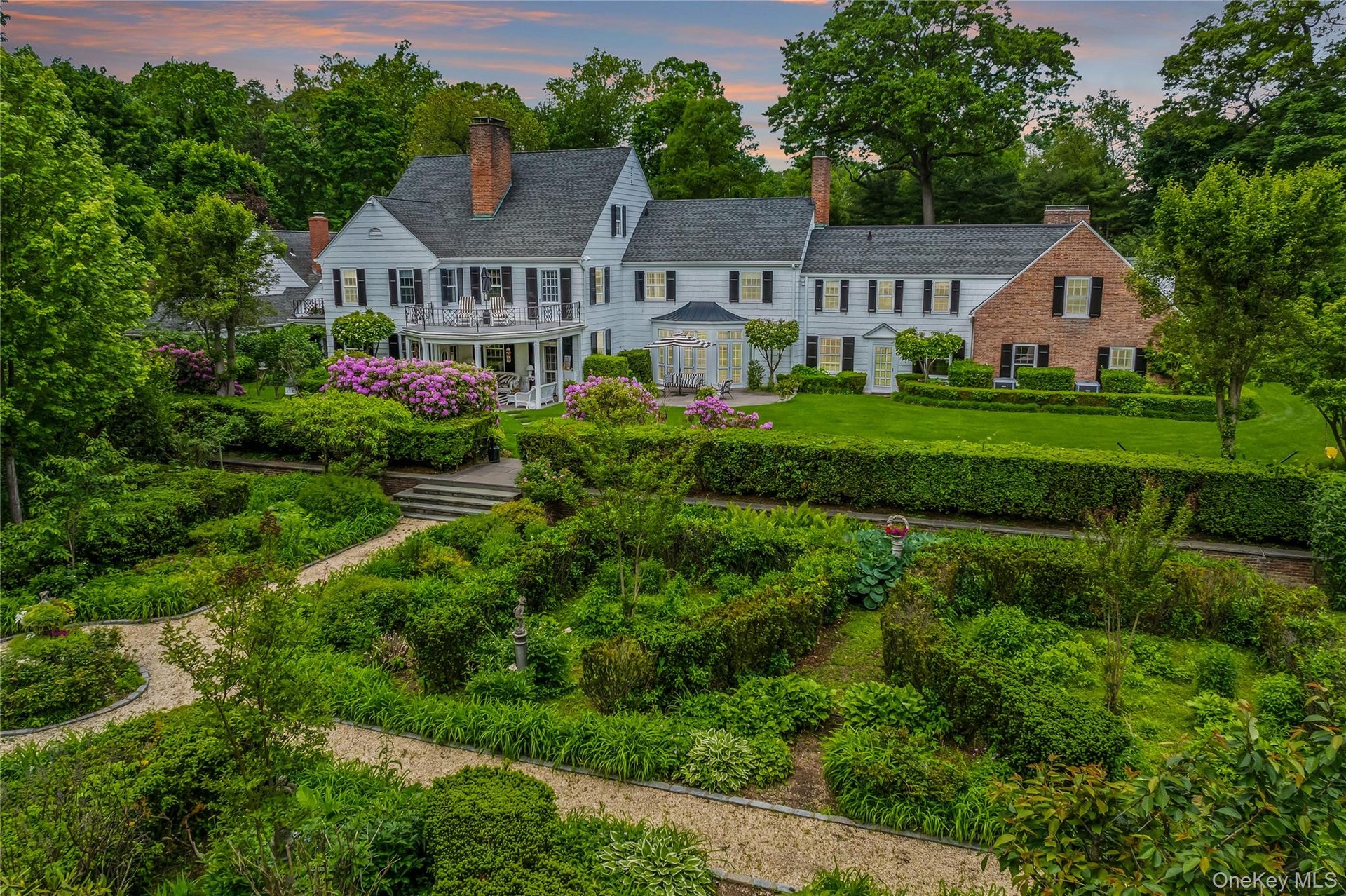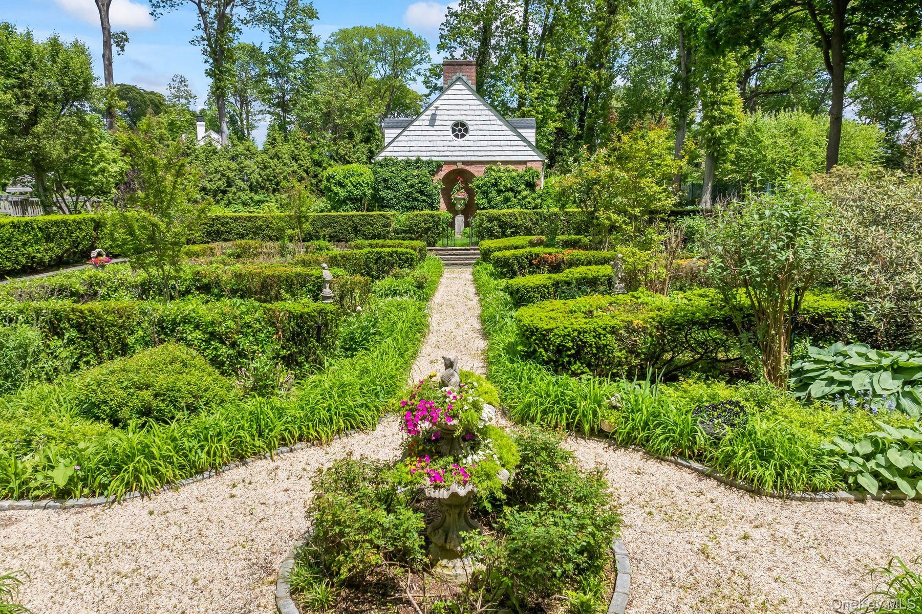 Set on 3.32 meticulously landscaped acres, this sophisticated and elegant Gold Coast jewel is a true luxury retreat. The home was designed by esteemed early 20th-century architect Mott B. Schmidt, who was highly regarded for his grand homes, and sought after by many high profile clients. A grand entrance welcomes guests, framed by stately arched trees that line the long, circular driveway. As they arrive at the main entrance, they are greeted by a beautiful fountain and lush gardens. Inside, the richly paneled foyer and wide pegged oak floors set the stage for exquisite architectural details, including a sweeping staircase and intricate custom millwork. The first floor offers a seamless blend of grandeur and comfort. The magnificent living room and banquet-sized dining room both feature elegant fireplaces, while the gourmet kitchen boasts a spacious center island and a bright breakfast room. A butler’s pantry adds convenience, and the library, adorned with built-in bookcases and a fireplace, offers a cozy retreat. Additional highlights include a sunroom, two en suite guest bedrooms, a first-floor washer/dryer, and a powder room. Oversized windows throughout the home provide breathtaking views of the lush grounds. The expansive primary suite is a private sanctuary, complete with a fireplace, spa-like bath, dressing area, and a large balcony overlooking the manicured gardens. This level also features four additional bedrooms with two Jack-and-Jill baths, two additional fireplaces, a gracious hall bath, a gym/bedroom, an office/bedroom, and a second-floor laundry room. The lower level offers an abundance of recreational space, including a playroom, arts and crafts area, and a full bath. The exquisitely landscaped grounds provide something for everyone, offering endless opportunities for relaxation and entertainment. The sunken gardens, originally designed by renowned landscape architect Robert Ludlow Fowler Jr., are a marvel to behold. They gracefully lead the way to a serene 20x50 saltwater gunite pool that is complemented by a spacious, elegant pool house. Sports enthusiasts will appreciate the lighted clay tennis court and a heated, enclosed outdoor structure, perfect for squash or basketball. Adding to the estate’s appeal, a charming three-bedroom, two-bath guest cottage provides comfortable accommodations, while a three-car heated garage with a separate workroom ensures ample space for vehicles and storage. This extraordinary estate is a timeless masterpiece inside and out, seamlessly blending historic charm with modern refinement.