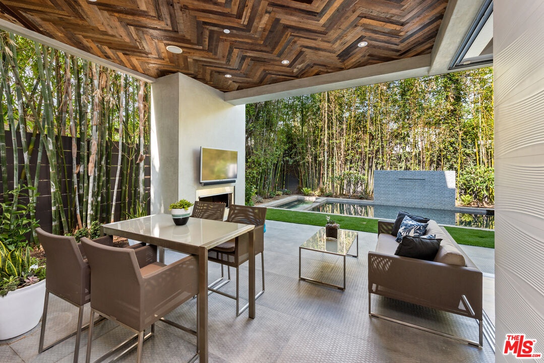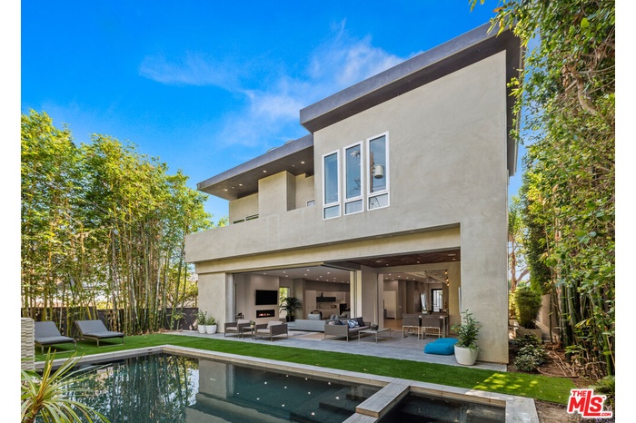 Fully furnished & gated modern home near Beverly Center, 3rd Street & Beverly Blvd shops. This lovely & hip modern home boasts 5 bedrooms all with their own en-suite baths plus a powder room (5.5 baths). High ceilings, hardwood floors, floating staircase & sliding pocket glass doors makes this an incredible home ideal for tenants looking to impress. The open floor plan includes a fully equipped kitchen with a built-in coffeemaker. A tranquil backyard awaits with an impressive pool, spa & fireplace. One bedroom downstairs with four bedrooms upstairs, each with their own balcony, along with a laundry room. Large & spacious master bedroom with a great walk-in closet & a master bath made for a king. 2 car garage + 2 car gated driveway.