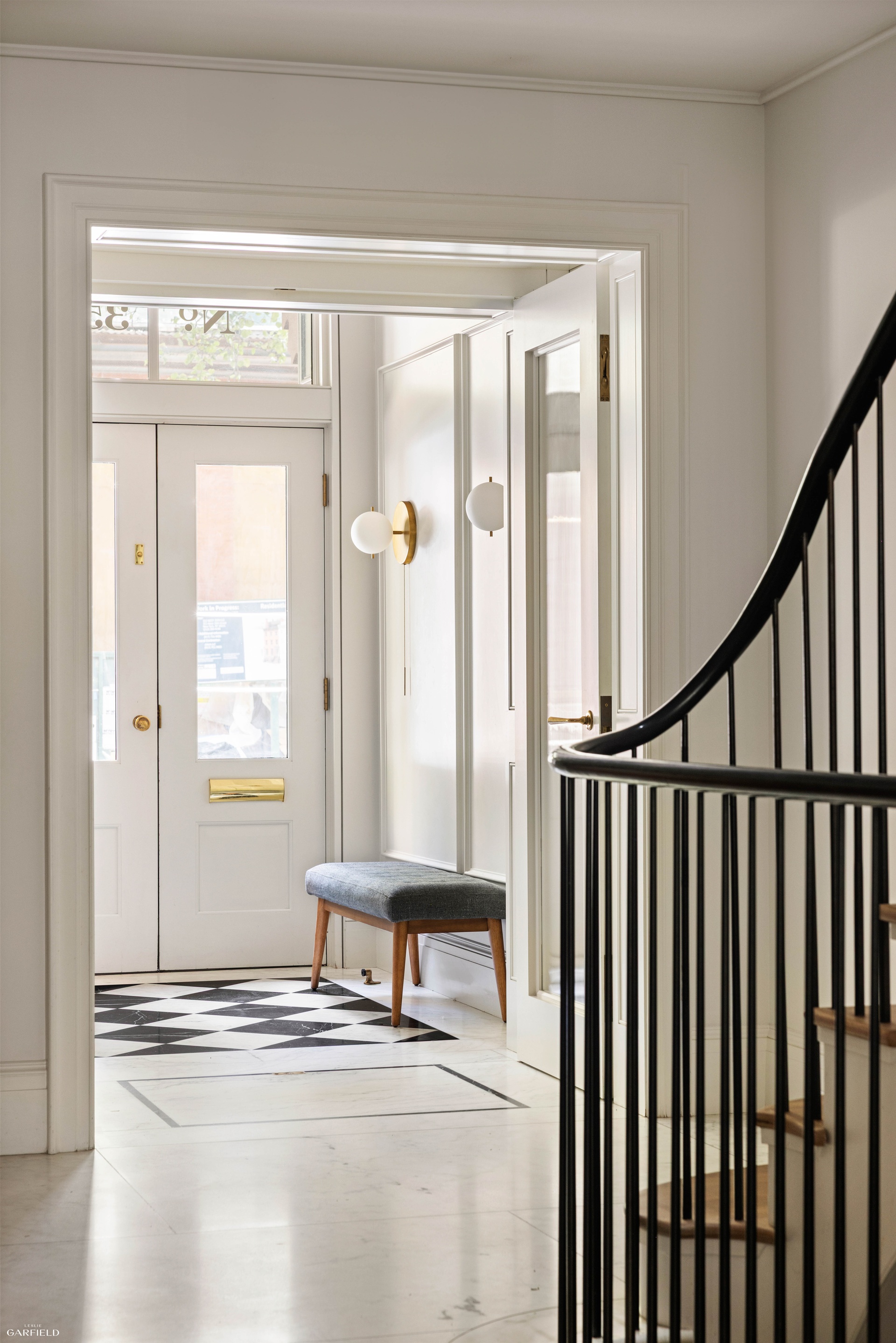 The residence is in pristine condition, featuring state-of-the-art finishes that pay homage to its original architectural details. A beautifully designed central staircase, with a sweeping, sculptural railing from top to bottom, anchors the home with elegance and grace. The layout reflects a reverence for traditional design, offering a harmonious balance between formal spaces and an inviting, relaxed atmosphere.