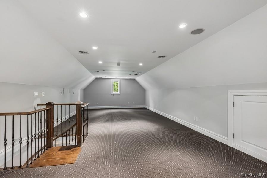 - Bonus room featuring carpet flooring, baseboards, vaulted ceiling, and recessed lighting